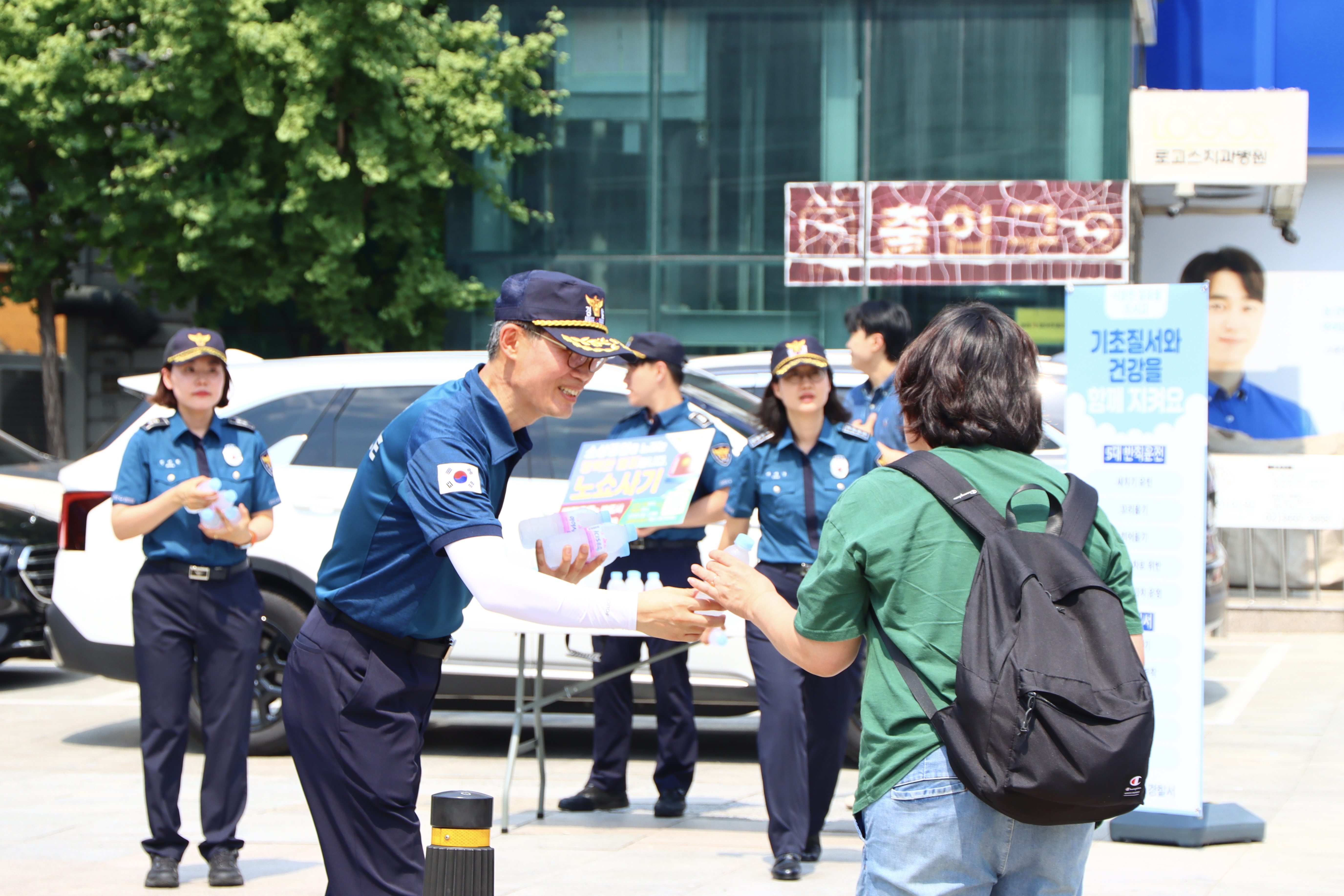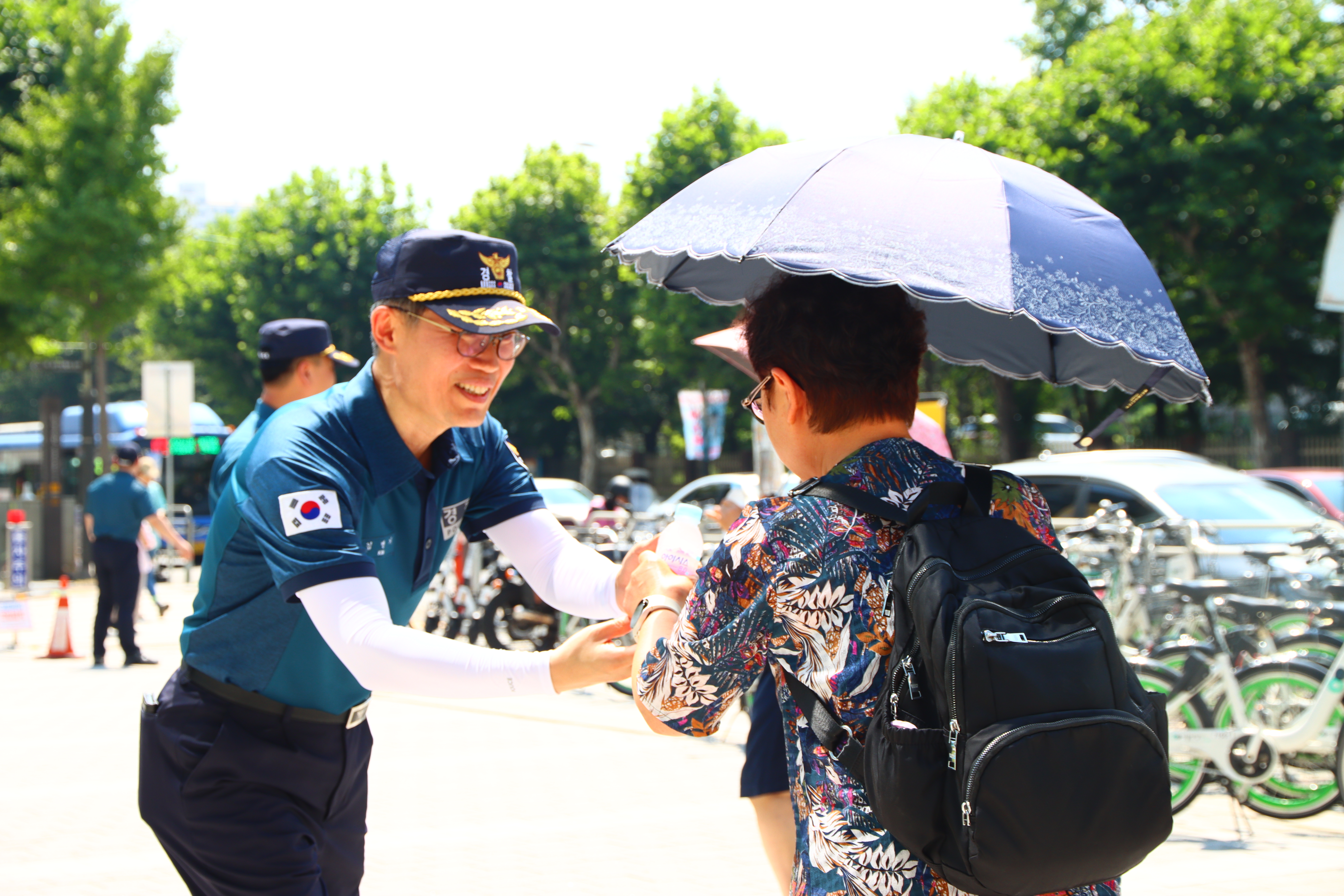 단순히 시원함을 나누는 캠페인이 아닌 경찰관들이 직접 거리로 나와