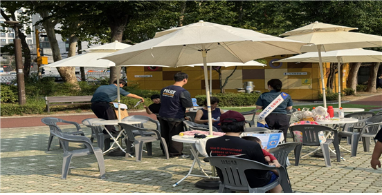 물놀이장 옆에서 휴식을 취하는 보호자께는 기초질서 확립과 자율적 질서유지에 대해 안내드리고,