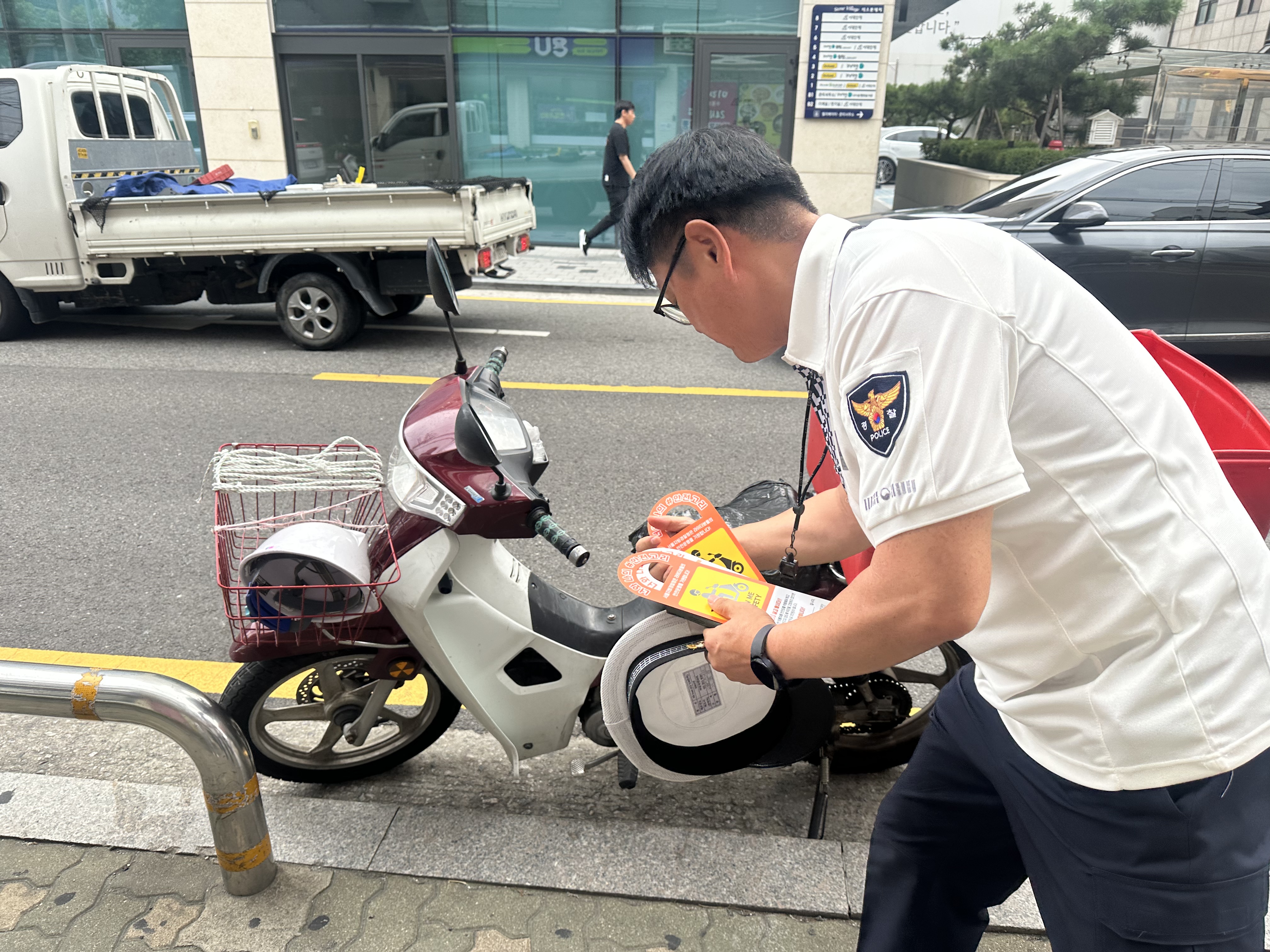 이륜차에는 '나는 법규 위반을 하지 않습니다' 스티커를 배부했습니다.