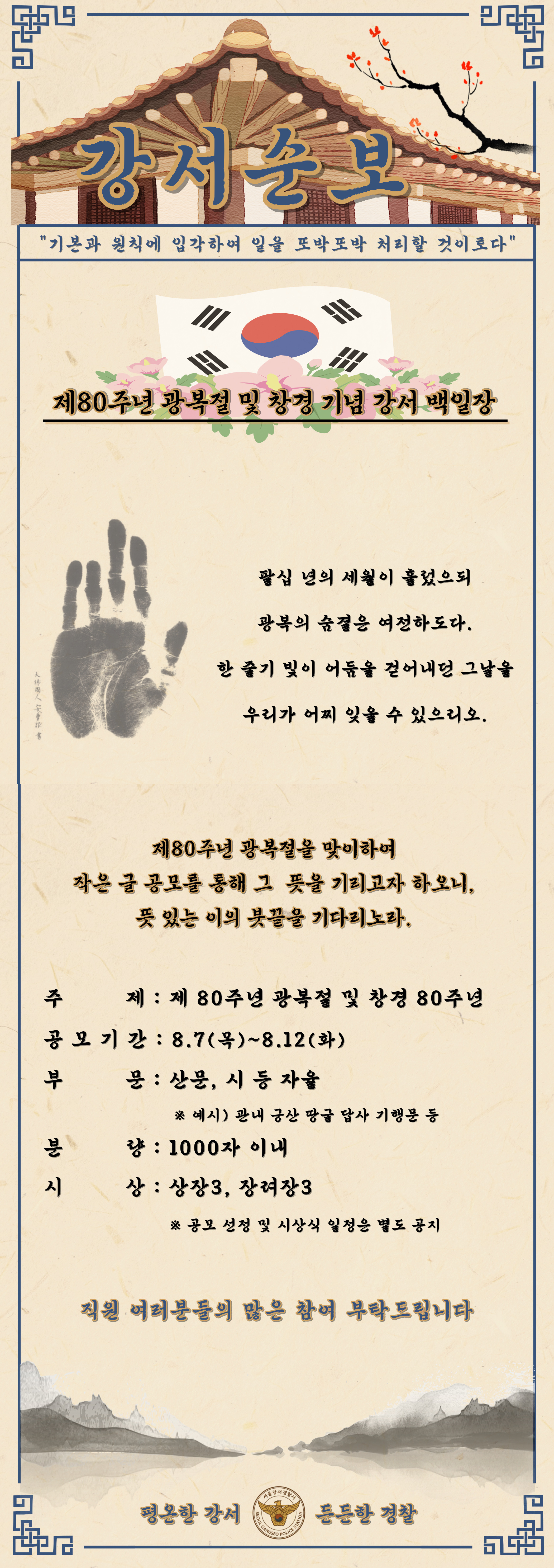 강서경찰서는 이를 기념하여, 직원들을 대상으로 백일장을 개최했습니다.