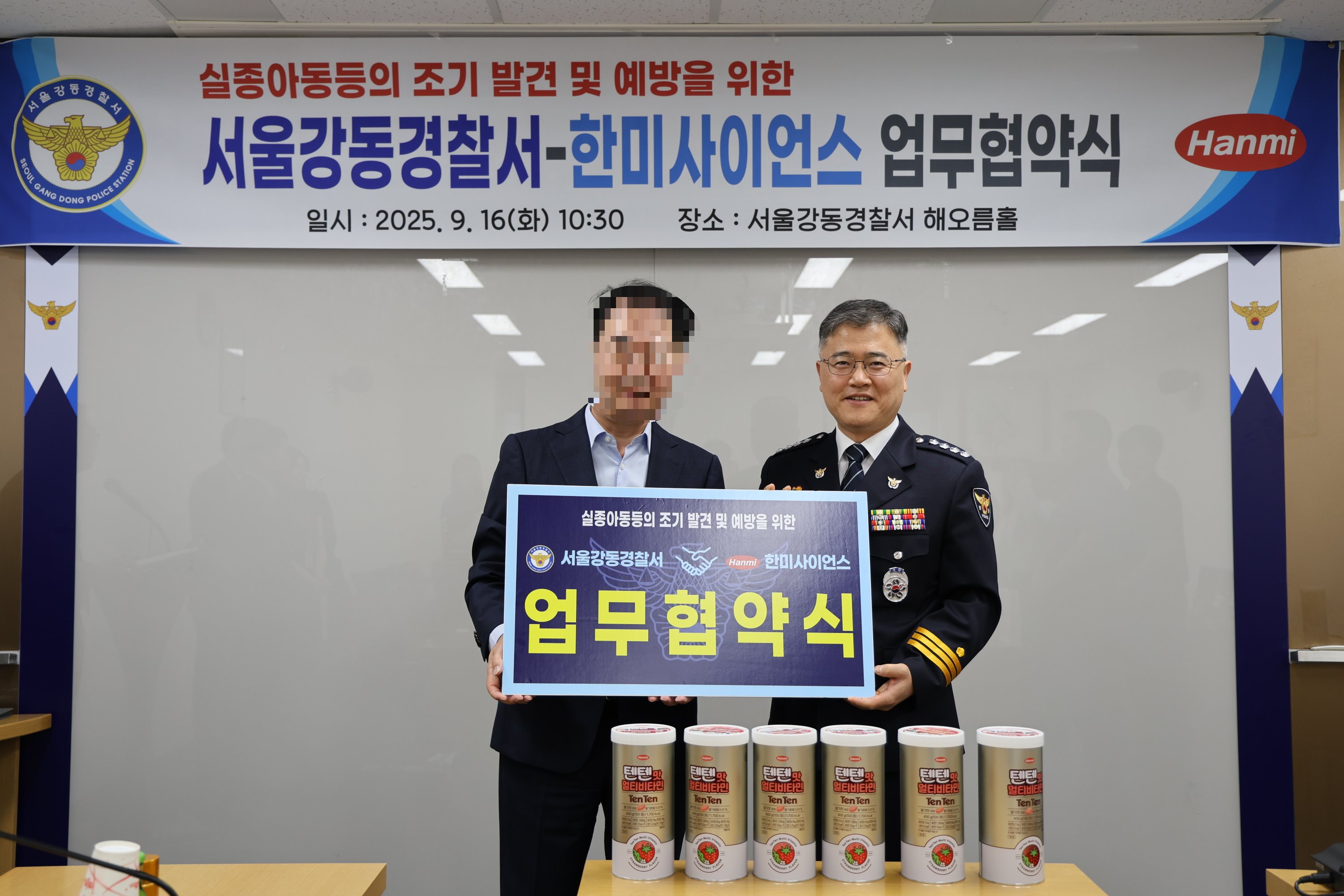 오늘은 강동경찰서와 한미사이언스가 함께한