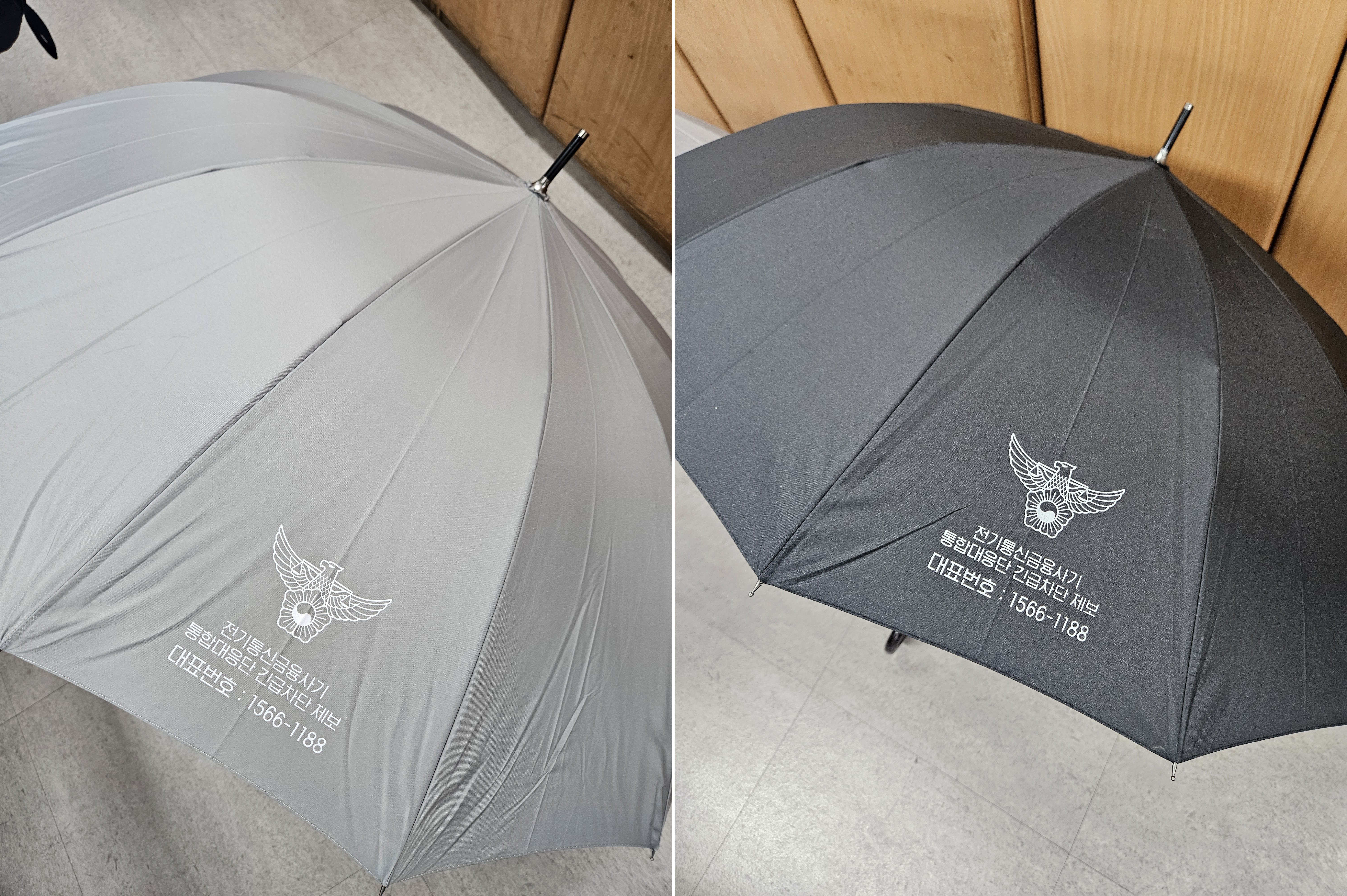 ‘전기통신금융사기 통합대응단’ 대표번호(1566-1188)가 적힌 우산을 제작하였습니다.