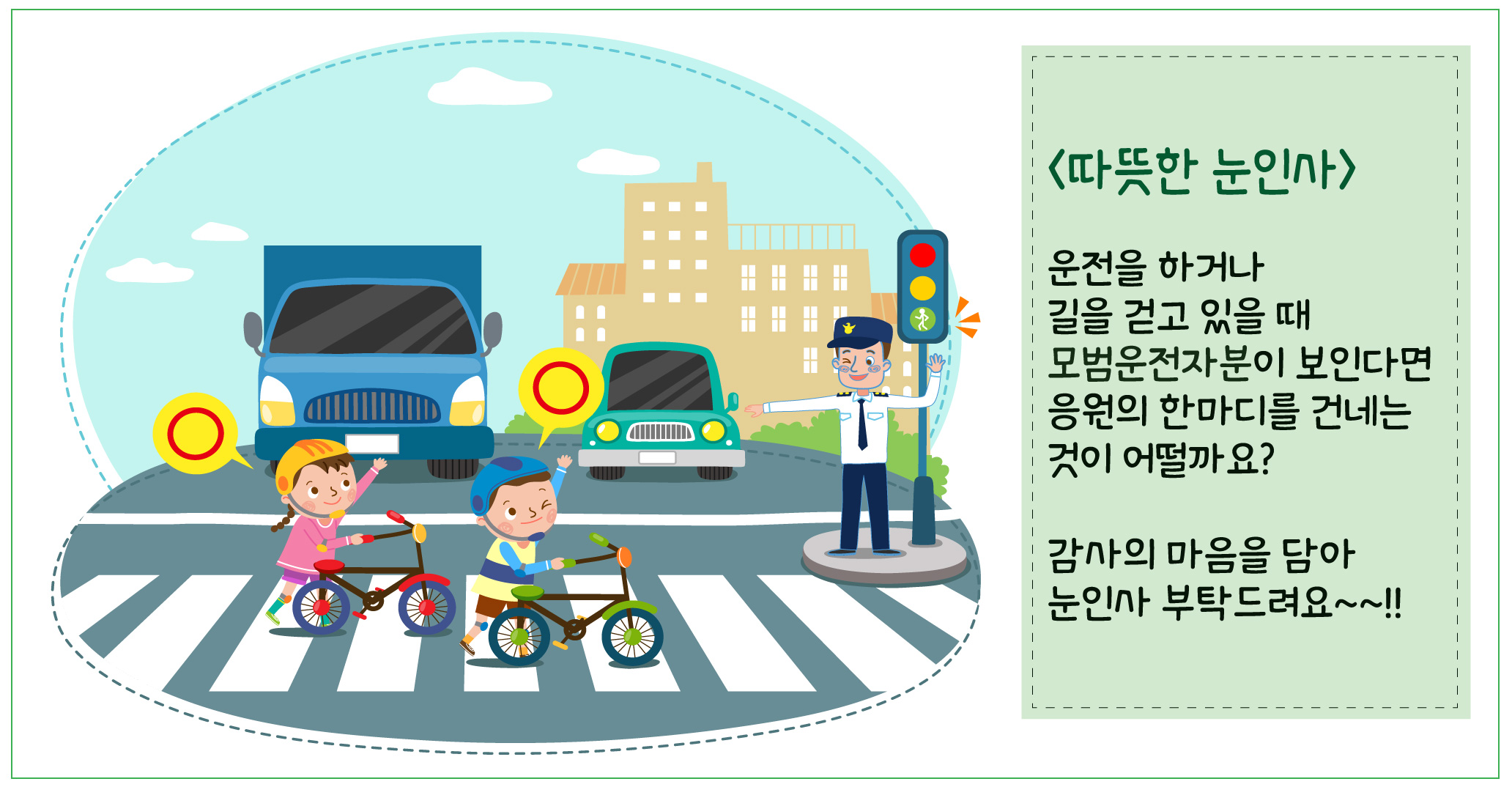 운전을 하거나 길을 걷고 있을 때 모범운전자들이 보인다면 응원의 한마디를 건네는 것이 어떨까요?