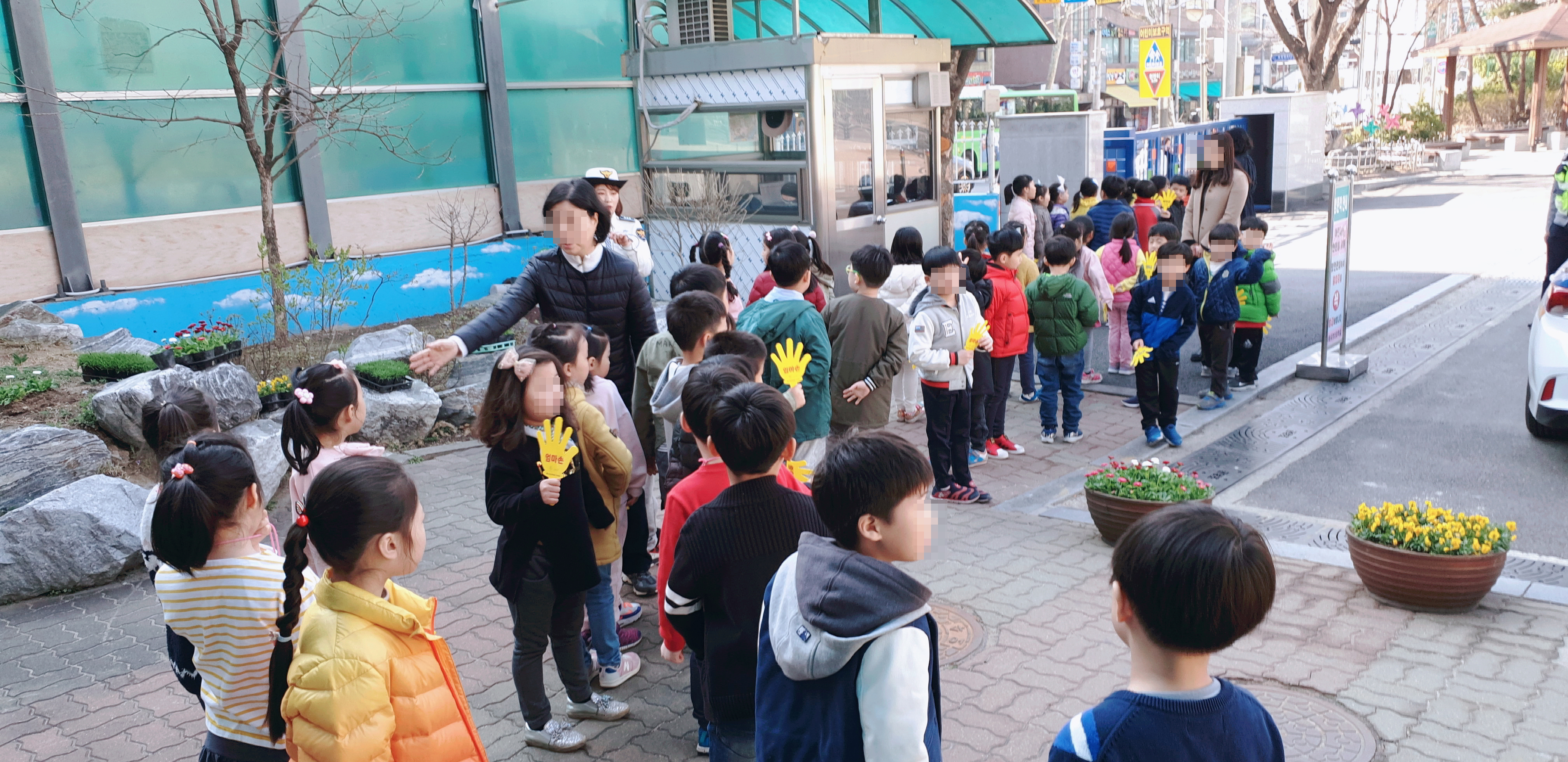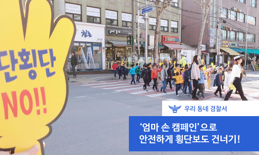 그렇기 때문에 초등학교 1학년 어린이들을 대상으로 시인성이 좋은 노란색 엄마 손 피켓을 들고