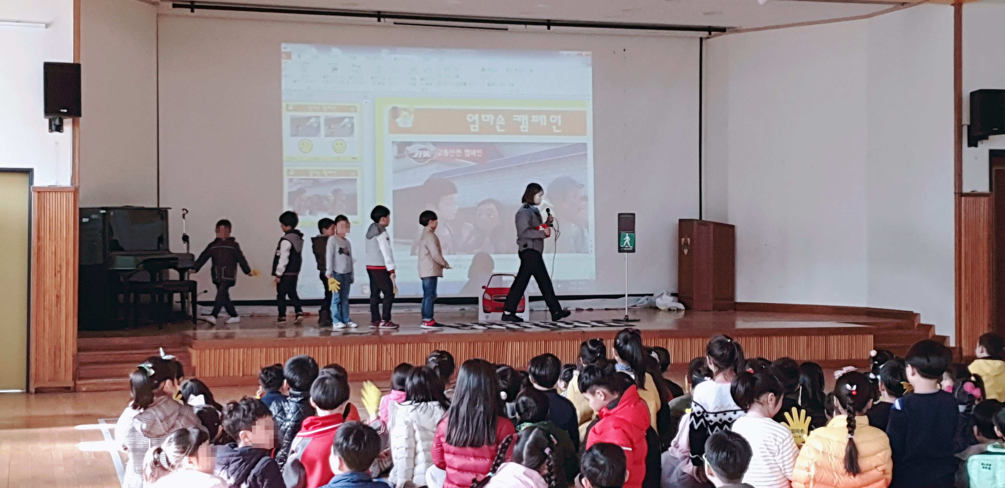 먼저 금양 초등학교 1학년 친구들과 "서다-보다-걷다" 보행안전에 대해 알아보고