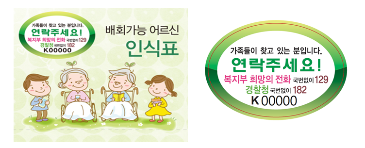 인식표는 치매증상으로 인하여 실종위험이 있다는 표시이며,