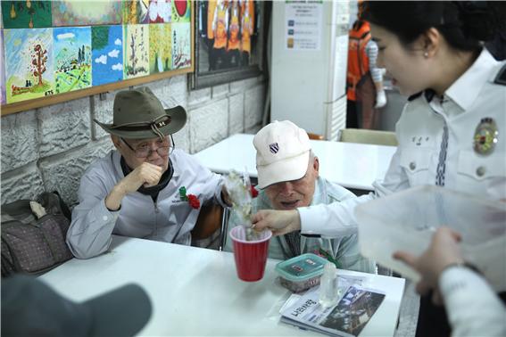 이렇게 한딴 한땀 공들여 제작한 카네이션을 가지고 동대문구 관내 경로당을 찾아갔는데요,