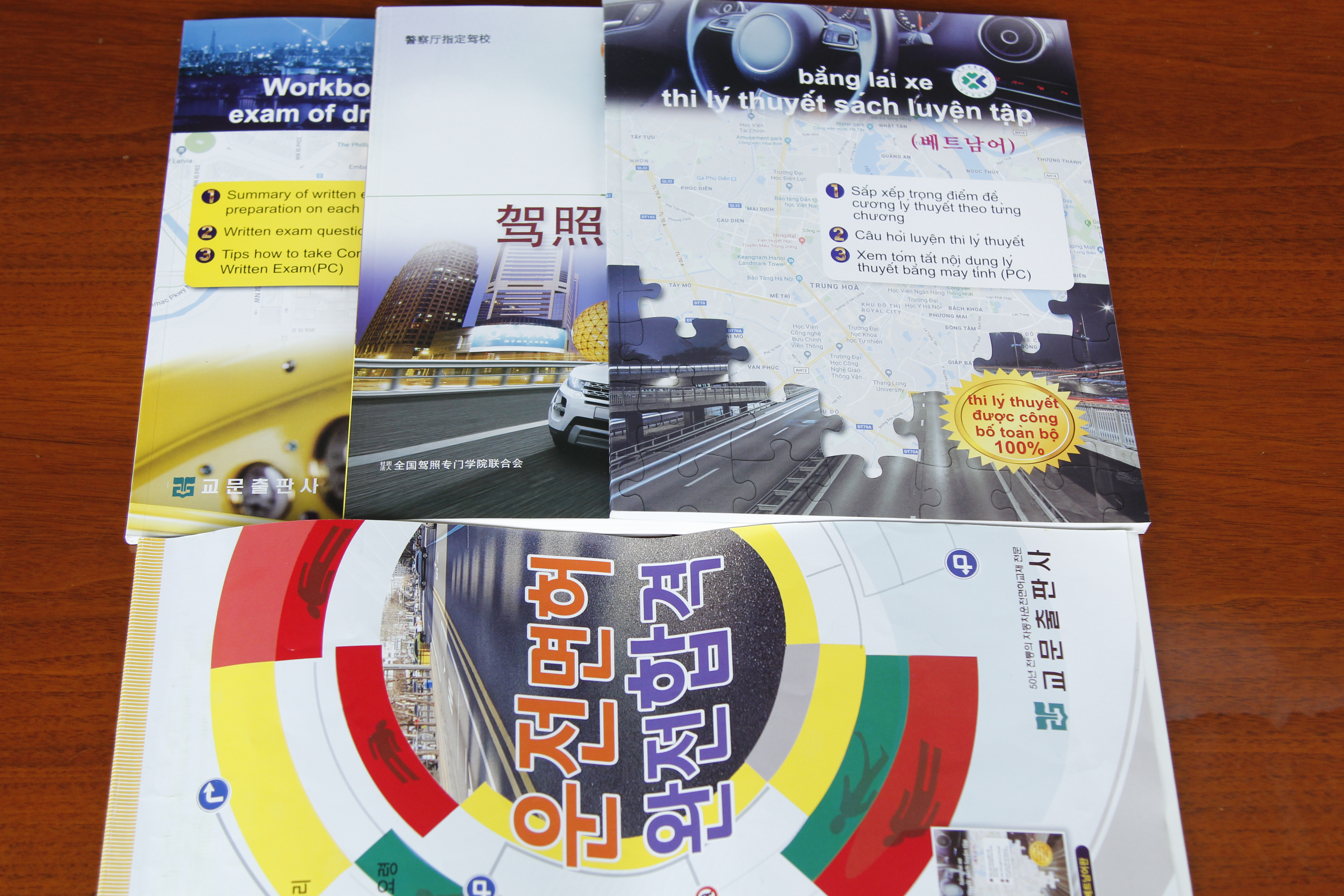 이를 조금이라도 보완하고자 4개국어로 번역된 학과시험 기출문제집으로 수업을 진행합니다.