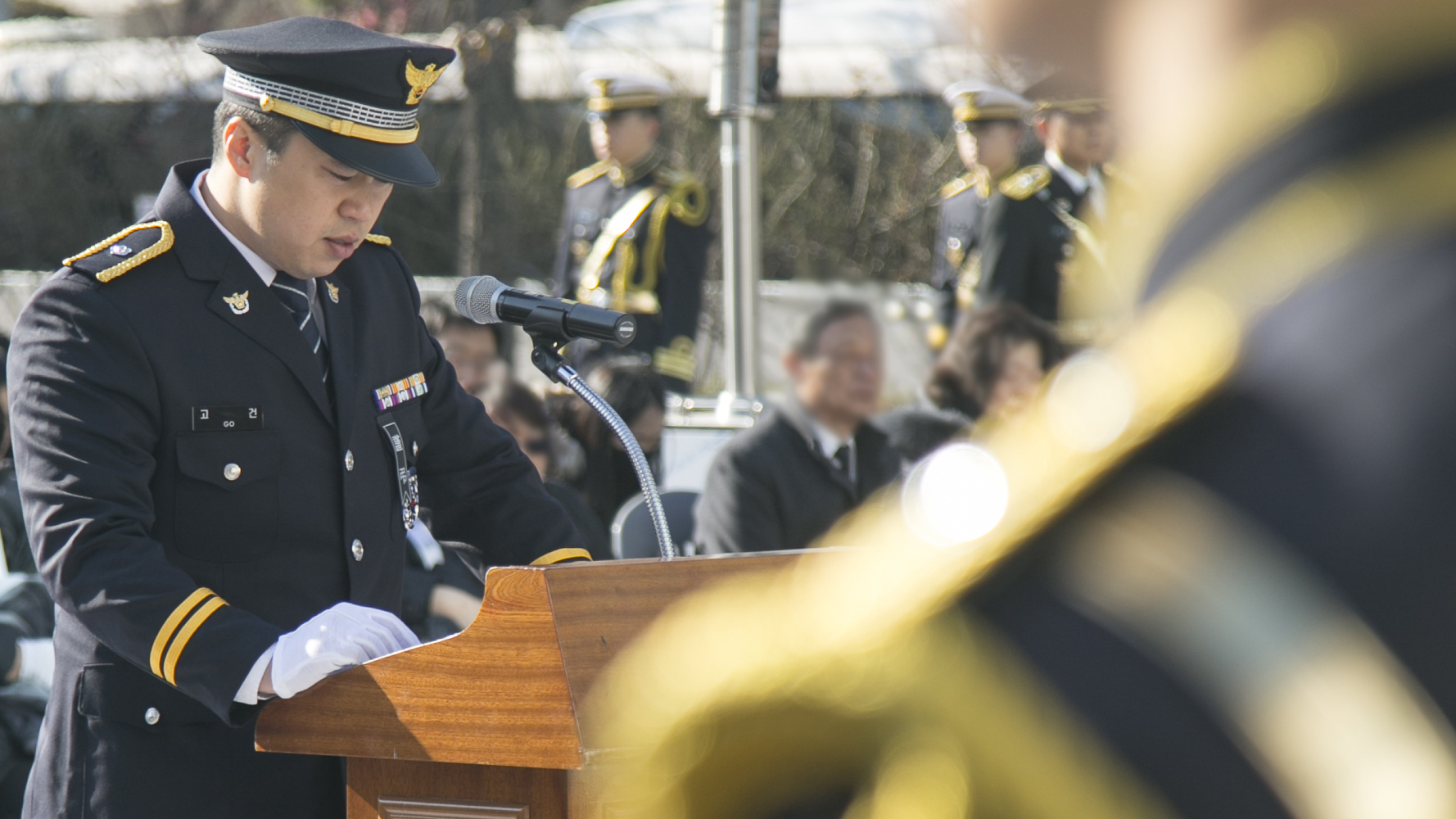 "때로는 시민의 안전과 생명을 지키기 위해 스스로를 헌신하는 경찰의 숙명 앞에서 당신은 경찰관으로 보여줄 수 있는 최대한의 용기와 희생정신을 실천하였습니다. 마지막 순간까지 제복인으로서의 사명을 다해준 당신은 경찰의 표상이자 영웅으로 기억될 것입니다."