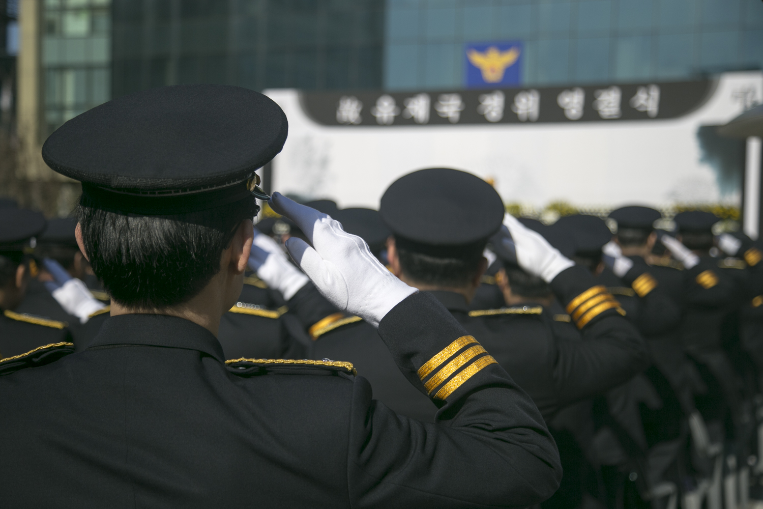서울경찰 동료들과 함께 고개 숙여 예를 표합니다.