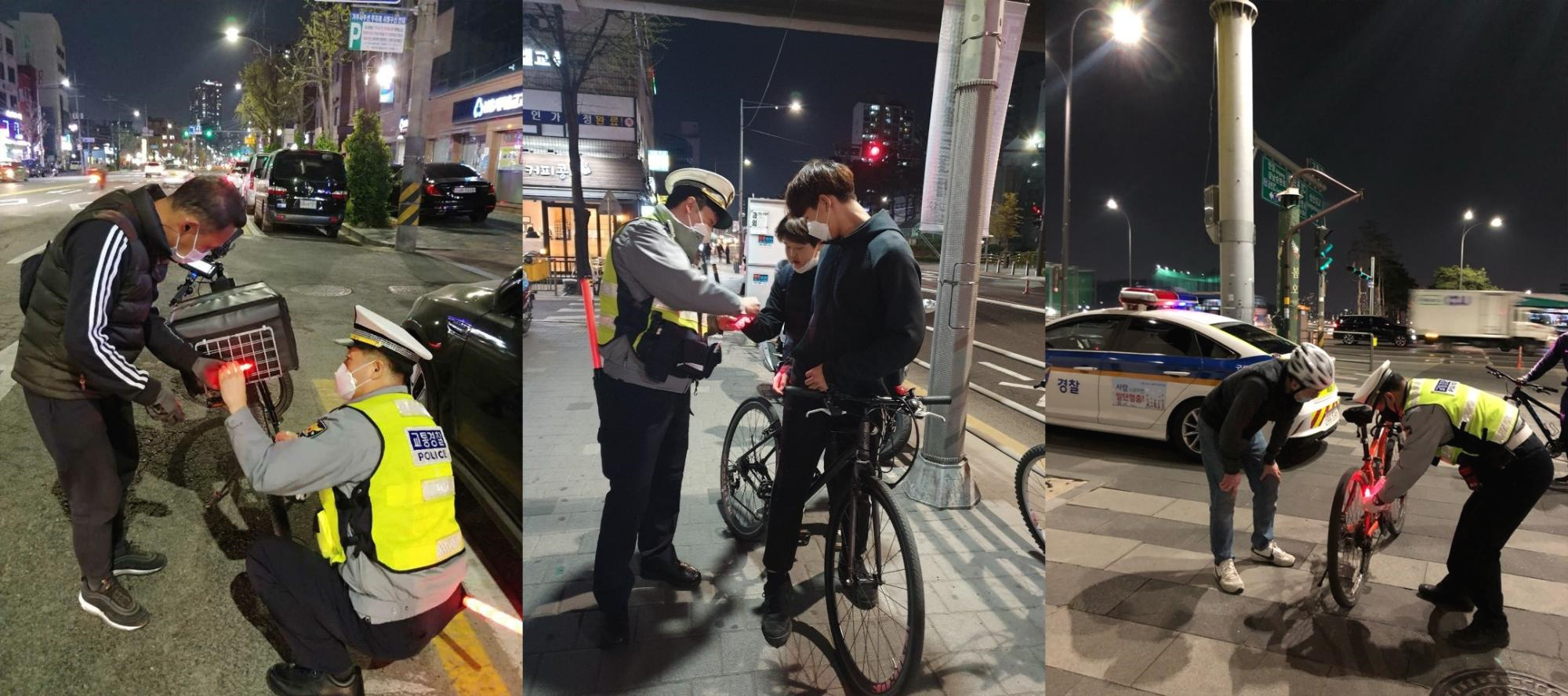 LED후미등 부착 및 올바른 자전거 타는 방법을 경찰관이 친절히 알려줄 것입니다!
