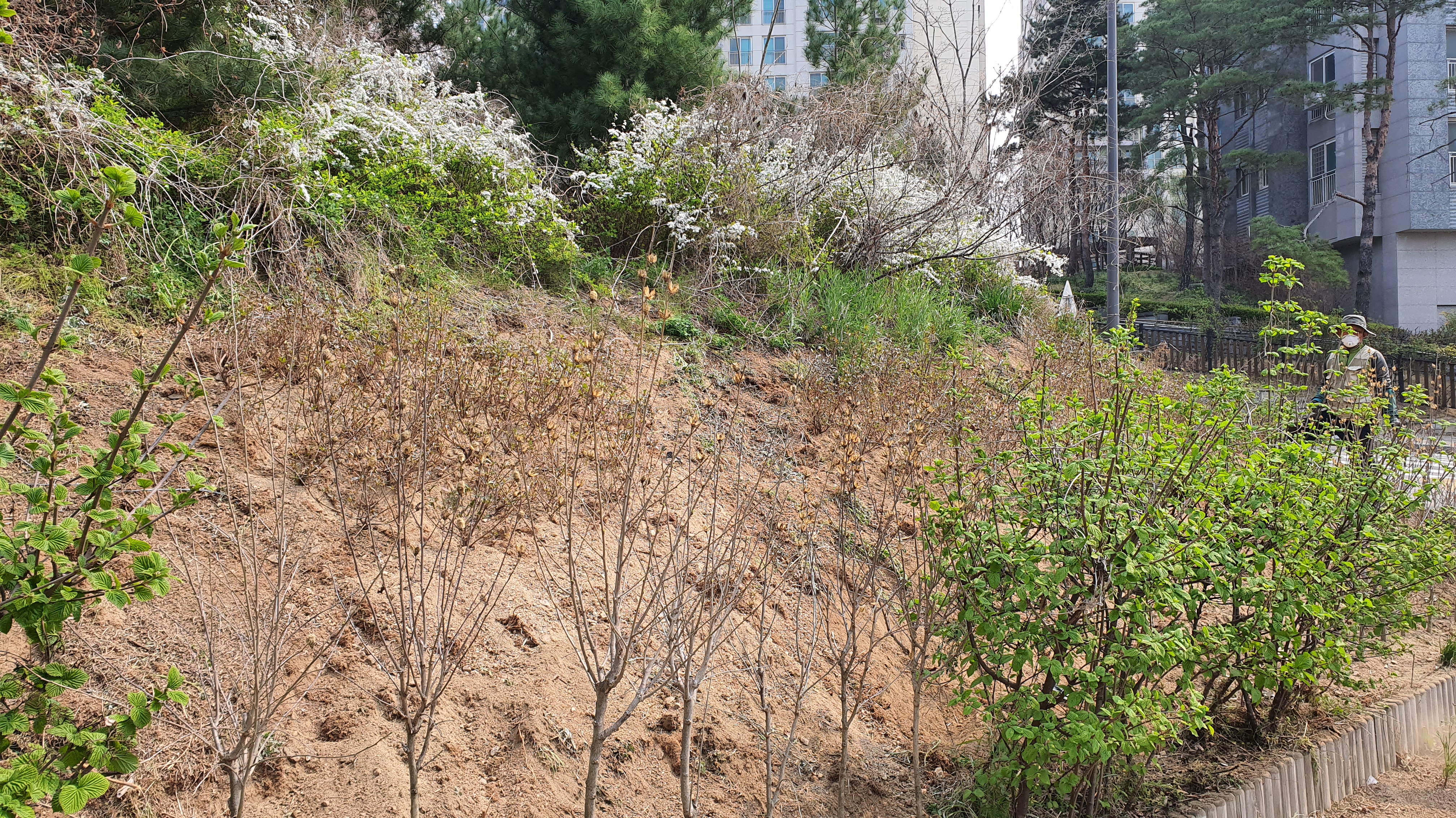 경찰서 입구에 지저분하게 있던 넝쿨과 낙엽들을 깔끔하게 제거하고,