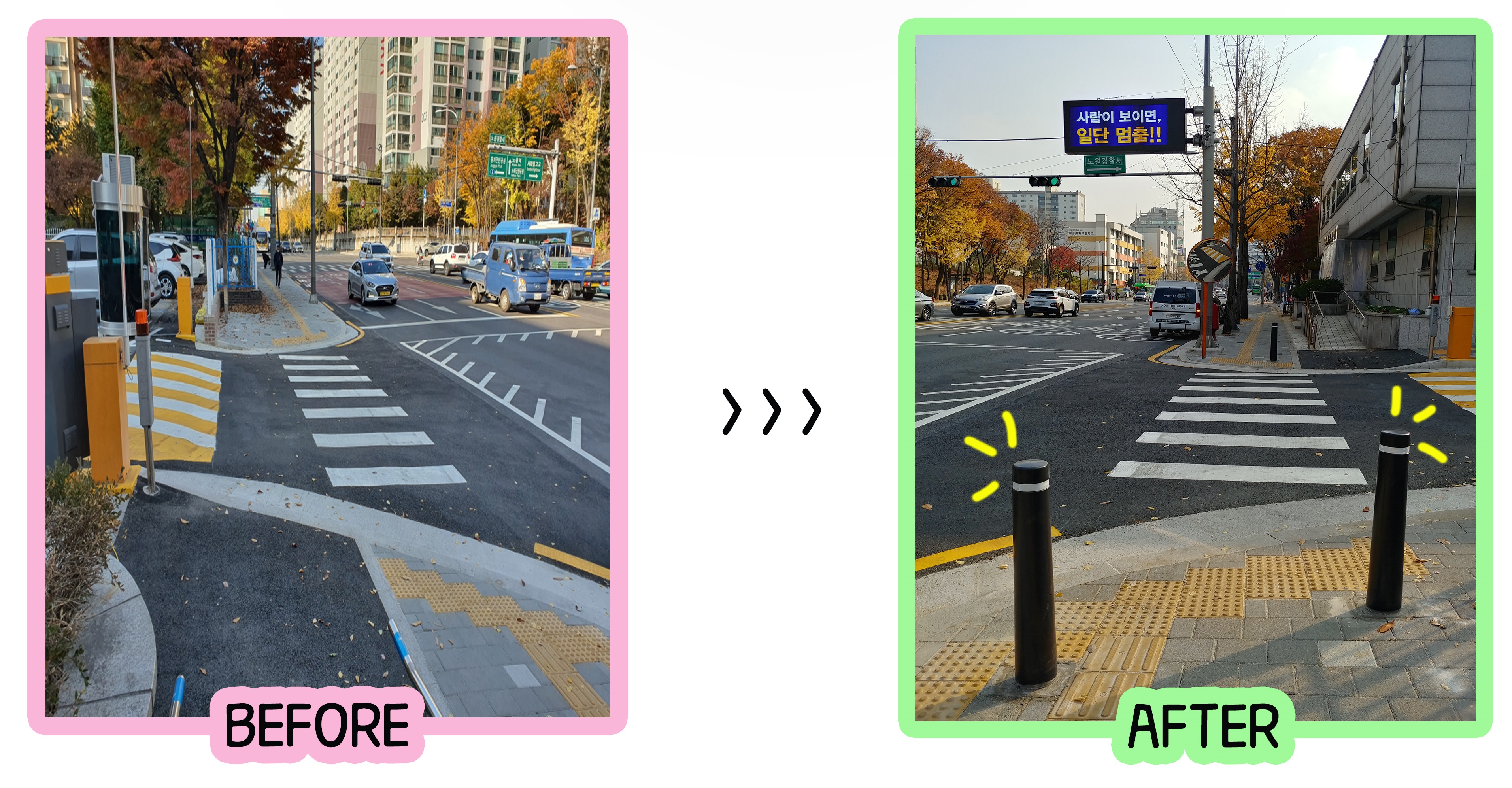 어떻게 하면 경찰서를 방문하시는 분들이 안전하게 출입하실 수 있을지 고민한 끝에,