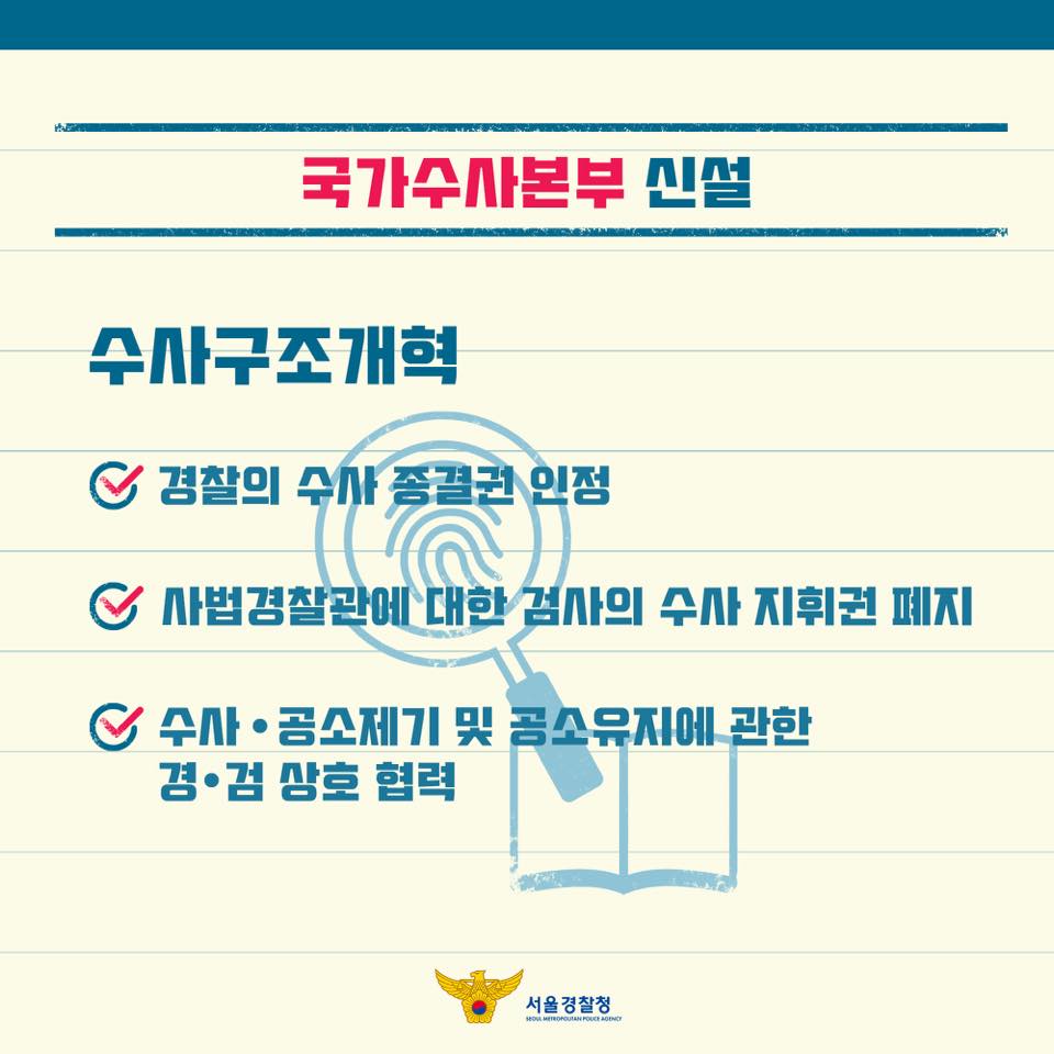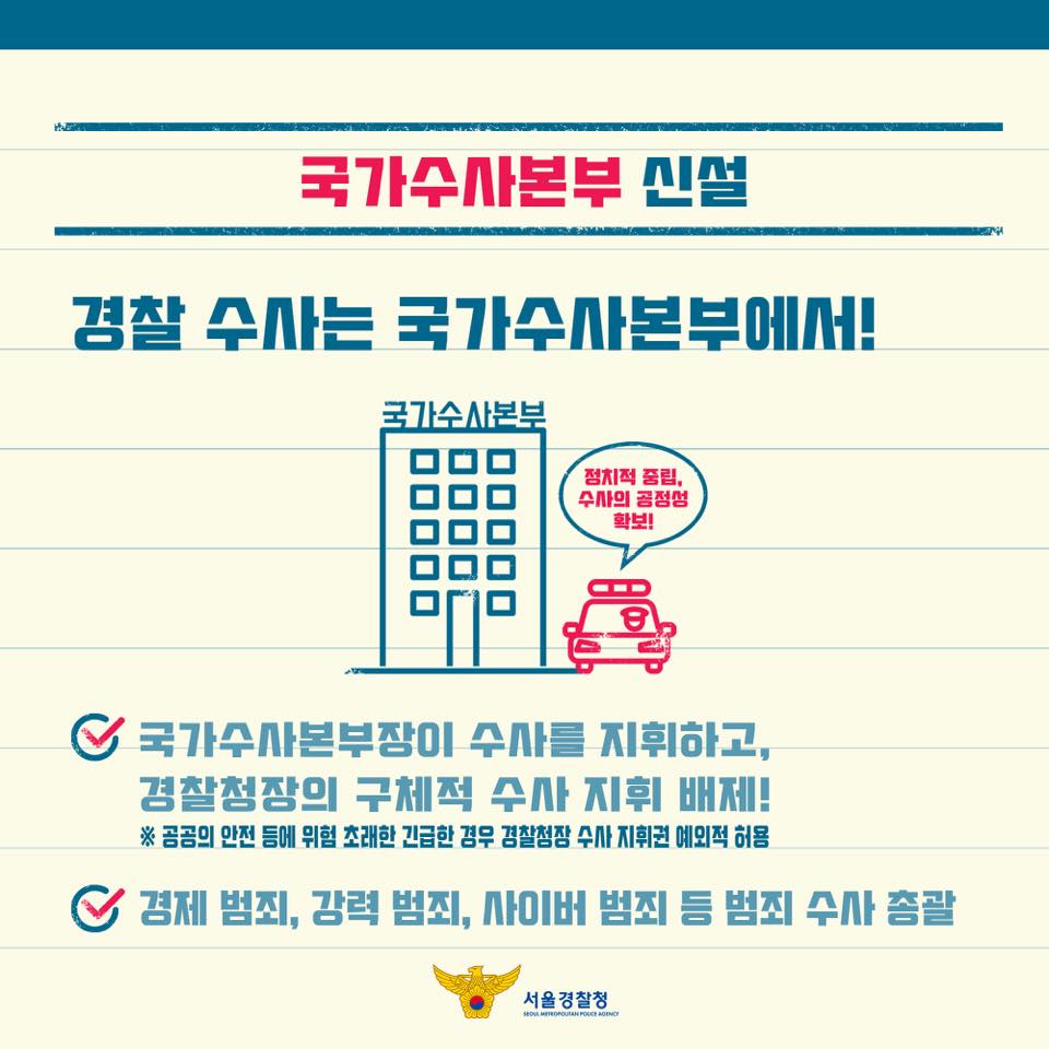 * 국가수사본부장이 수사를 지휘하고, 경찰청장의 구체적 수사 지휘 배제!