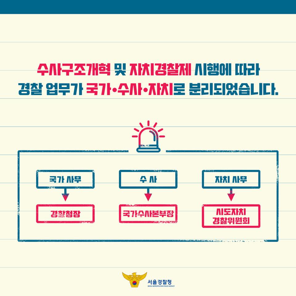 경찰 업무가 국가 · 수사 · 자치로 분리되었습니다.