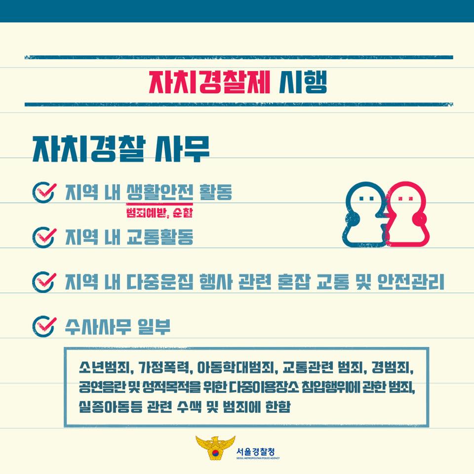 * 범죄 수사와 자치경찰 사무 외 정보, 외사, 경비 업무 등 수행