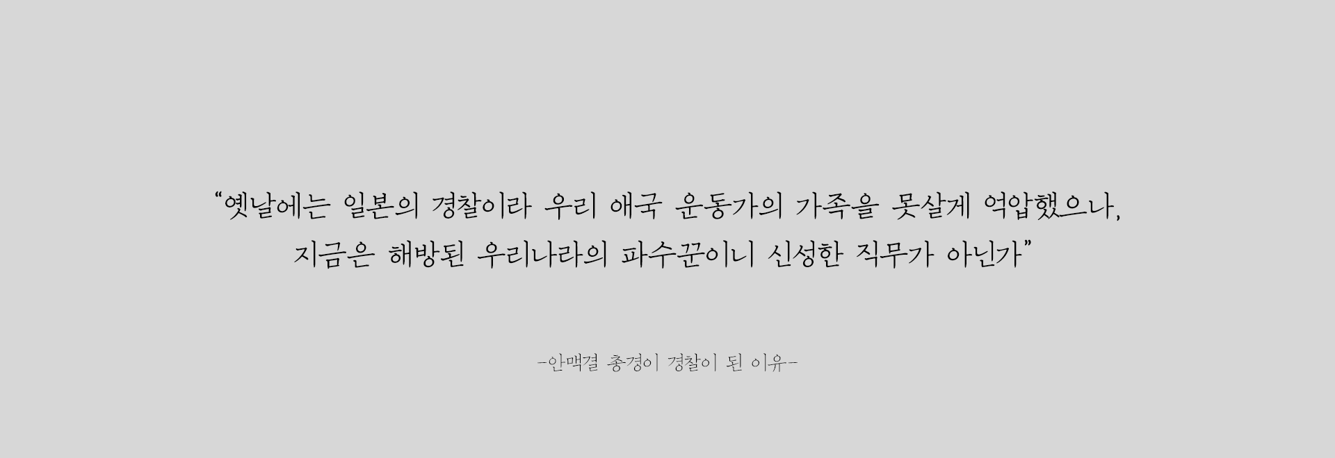 경찰관으로서, 독립운동가로서, 국가와 국민을 위해 평생의 삶을 바친 '안맥결 총경'