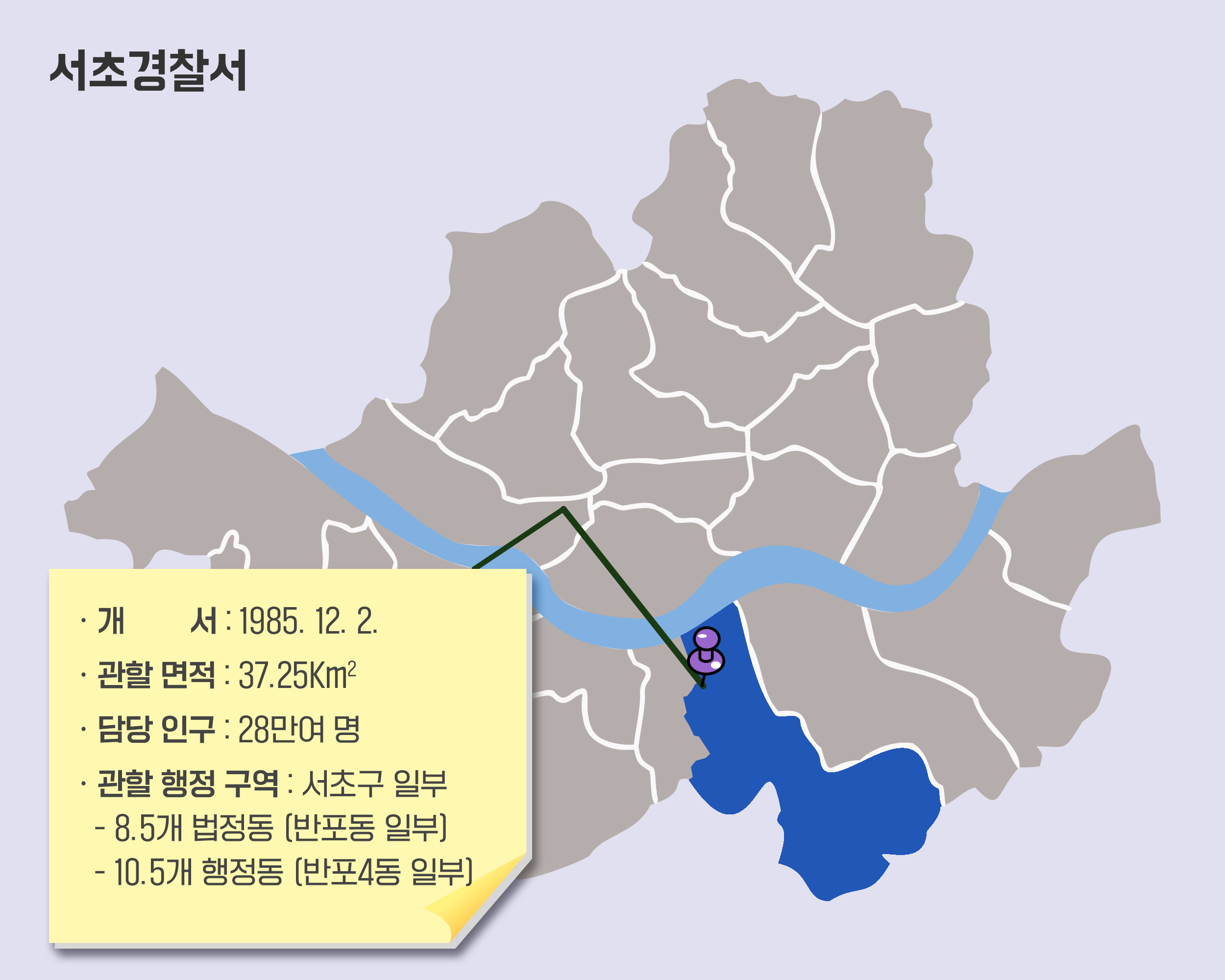 관할지인 서초구는 서울에서도 중심적인 역할을 하는 업무시설 밀집 지역이기에