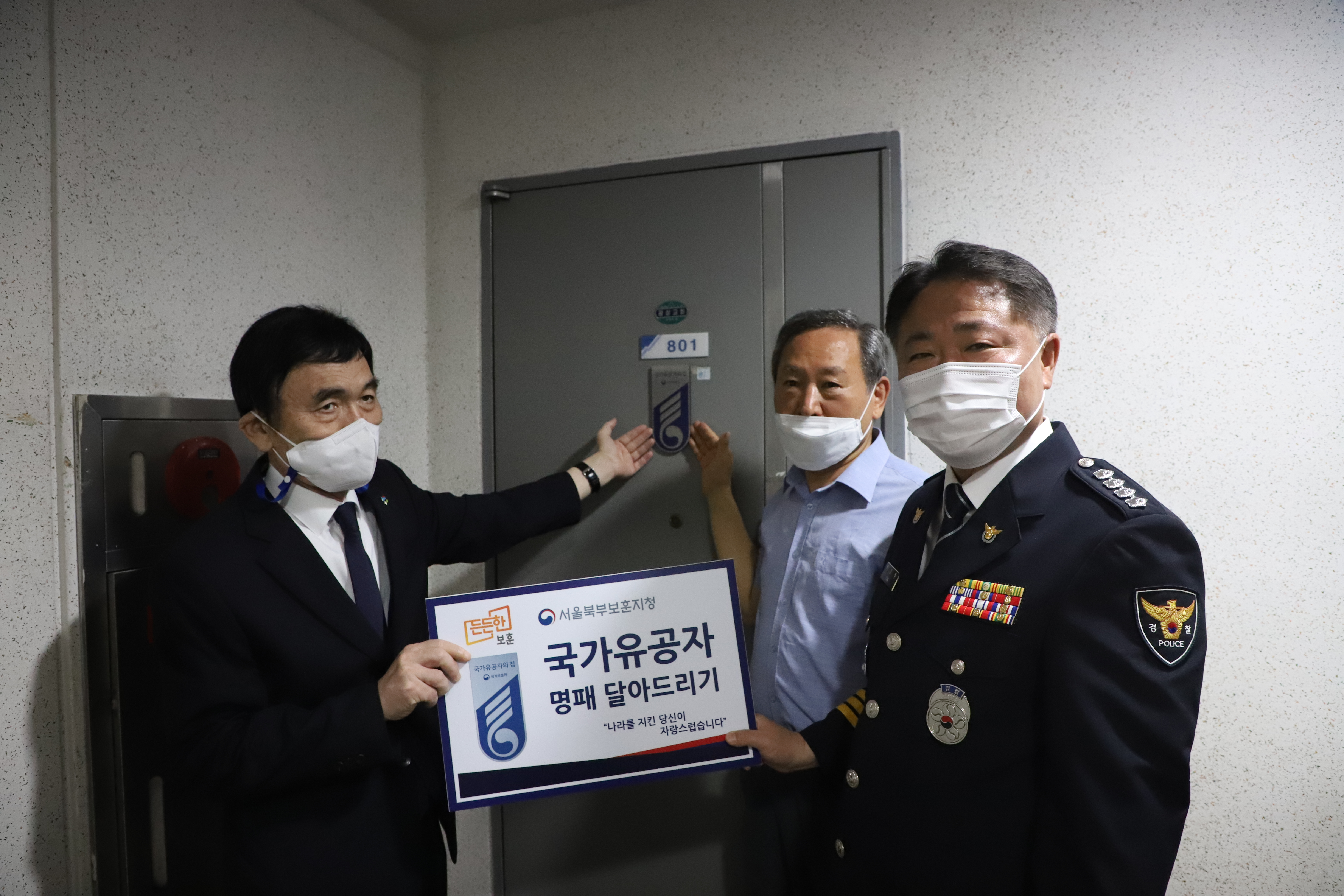 나라를 위하여 헌신하여 주심에 대한 감사함을 성북경찰서 직원을 대표하여 명패와 함께 전달하였습니다.