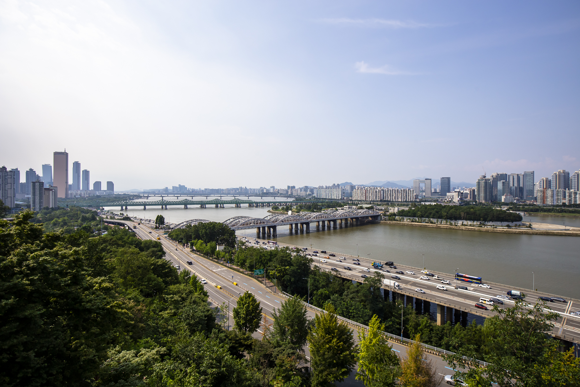 동작대교에서 바라보는 한강과 서울 곳곳은 언제라도 방문자의 눈을 즐겁게 하지만,
