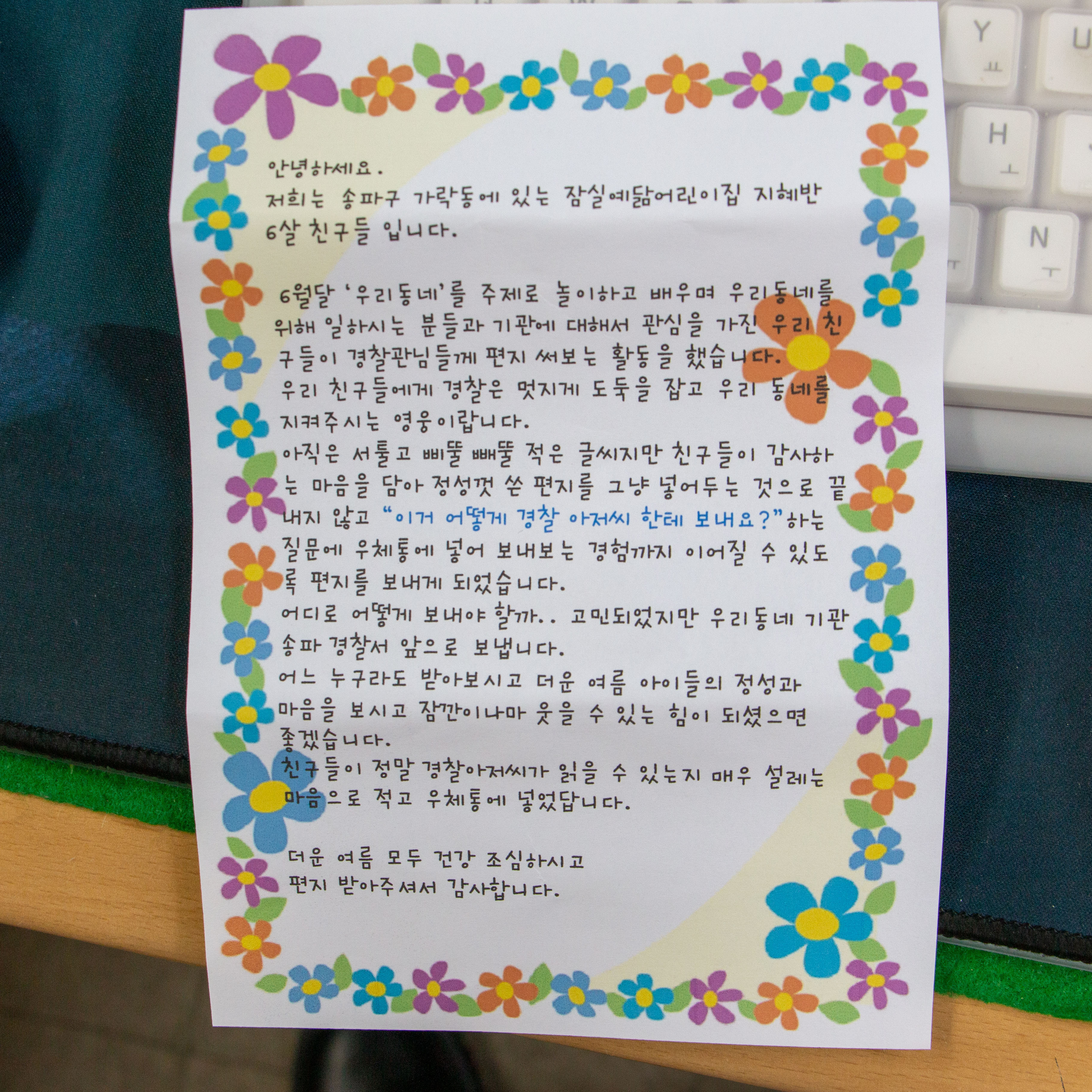 며칠 전 어린이집 아이들에게 받은 편지에 대해 아주 감동받았던 사연을 전달해 드렸었는데요.