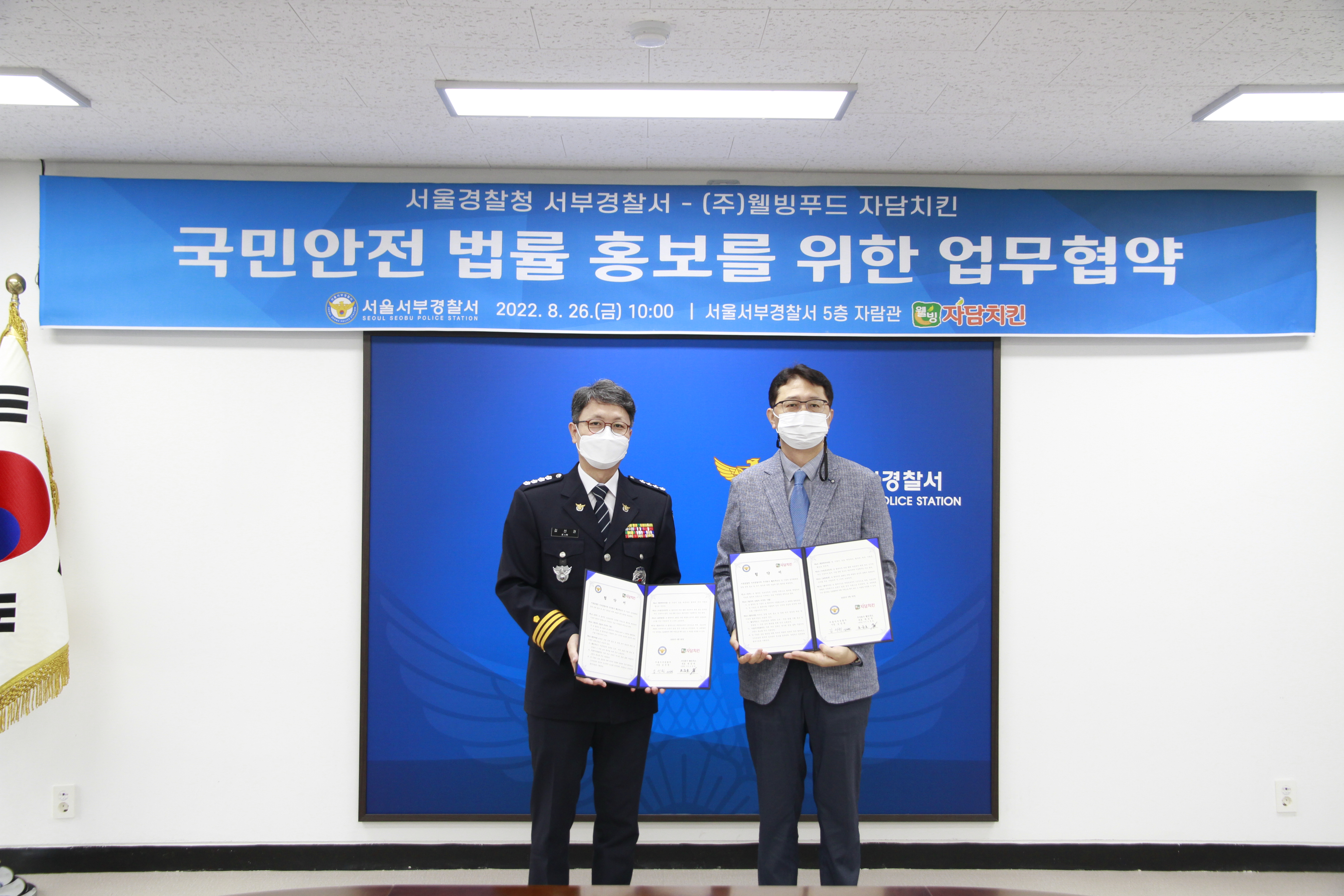 자담치킨과 서부경찰서가 함께 하는 정책홍보 캠페인을 통해 지속적으로 캠페인을 추진하여