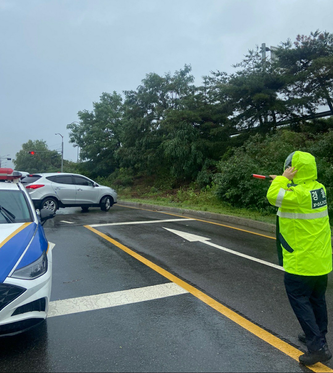 이미 침수되어 통행이 불가능한 지하차도에 침수된 지 모르고 진입하는 차량을 우회 조치 하였습니다.