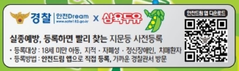 삼육두유 6종 포장 박스에서 만날 수 있는 '지문등 사전등록제도' 와 다운로드 QR!