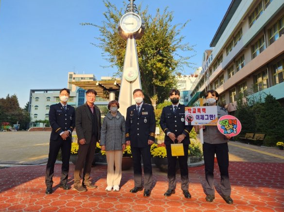 교장선생님과 교감선생님, 그리고 당산지구대 경찰관들이 안전한 학교를 만들기 위해 한 마음 한 뜻으로 한 곳에 모였습니다!