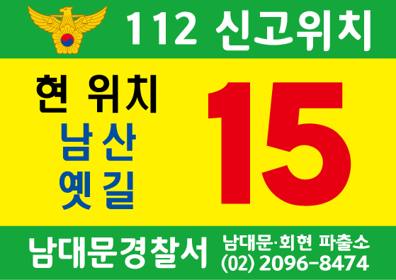 가장 가까이 있는 신고판의 번호를 기억하시면 보다 빠르게 남대문경찰이 시민들께 달려갑니다.