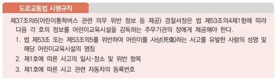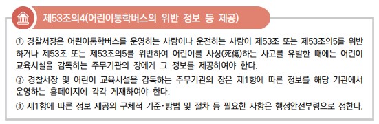 경찰서장에게 통학버스 운영자나 운전자의 의무 위반사항 또는 이로 인해 발생한 어린이 사상사고 정보 제공을 요청할 수 있으며,