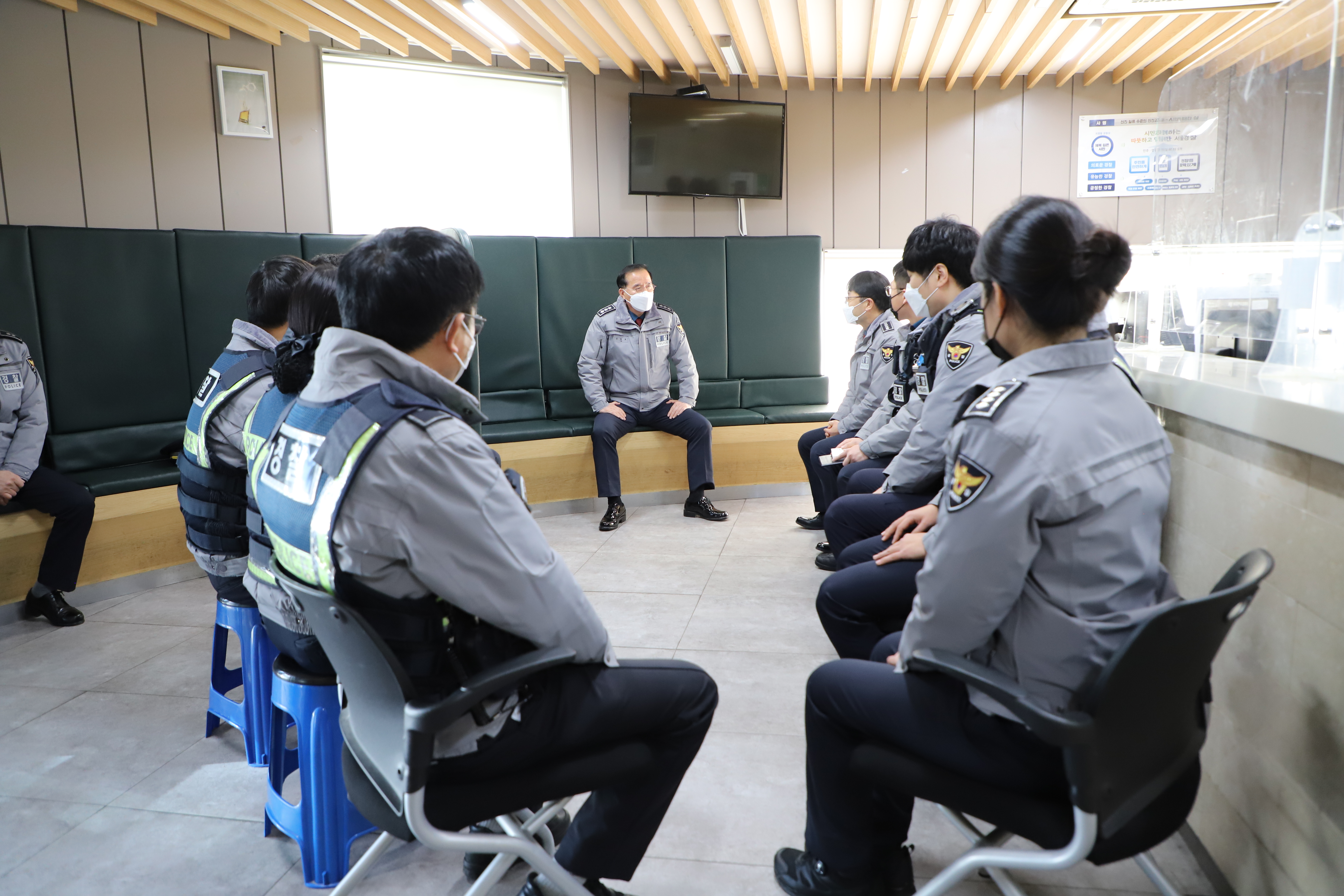 김광호 서울경찰청장께서 서울역파출소에 방문을 하였습니다! 유동인구가 하루에 많게는 수십만 명에 달하는 바쁜 서울역파출소에 방문하신 이유가 무엇일까요!? 먼저, 주요 피의자를 검거한 서울역파출소 유성민 순경에게 표창장을 수여하였습니다. 서울경찰청장으로부터 직접 표장을 수여받는 경험이 자주 있는 일은 아니다 보니 더욱 특별하게 다가왔을 겁니다! 앞으로도 경찰 업무를 하면서 더욱 열심히 시민 가까이에서 봉사하는 마음으로 근무하시기를 기원합니다. 그리고 서울역파출소 직원들과 짧은 시간 이야기를 나누시면서, 신임 직원들의 출퇴근부터, 근무 여건에서 어려운 점은 없는지 등을 물어보시며 격려하였습니다! 서울경찰청장이 방문하신 와중에도 112 신고는 계속됩니다. 서울역파출소 직원들은 신고를 접수하고 현장에 있는 순찰차와 무전을 실시합니다! 어떤 상황에서도 시민의 도움이 필요하면 가장 빠르게 가는 남대문경찰! 정말 멋있습니다! 특히 최근 2년 간, 코로나로 인해서 많은 어려움이 있었음에도 불구하고 서울역의 노숙자가 큰 숫자로 감소했는데요! 노숙인전담 경찰관부터 서울역파출소 순찰팀의 모든 직원들이 함께 노력한 덕분에 주도적으로 노숙인 관련 업무처리를 한 것을 격려하였습니다. 짧은 간담회를 마치고 서울경찰청장과 서울역파출소장 등이 함께 서울역 일대를 순찰하며, 경찰관의 손길이 필요한 것은 없는지 둘러보았습니다. 저희 남대문경찰은 언제 어디서든 시민들을 위해 노력하겠습니다. 아직 쌀쌀한 2월, 마음은 따뜻하게 보내시길 바랍니다.