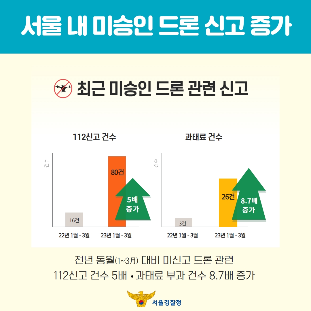 서울경찰청은 미승인 드론 비행에 대한 시민 여러분들의 경각심을 높이기 위해