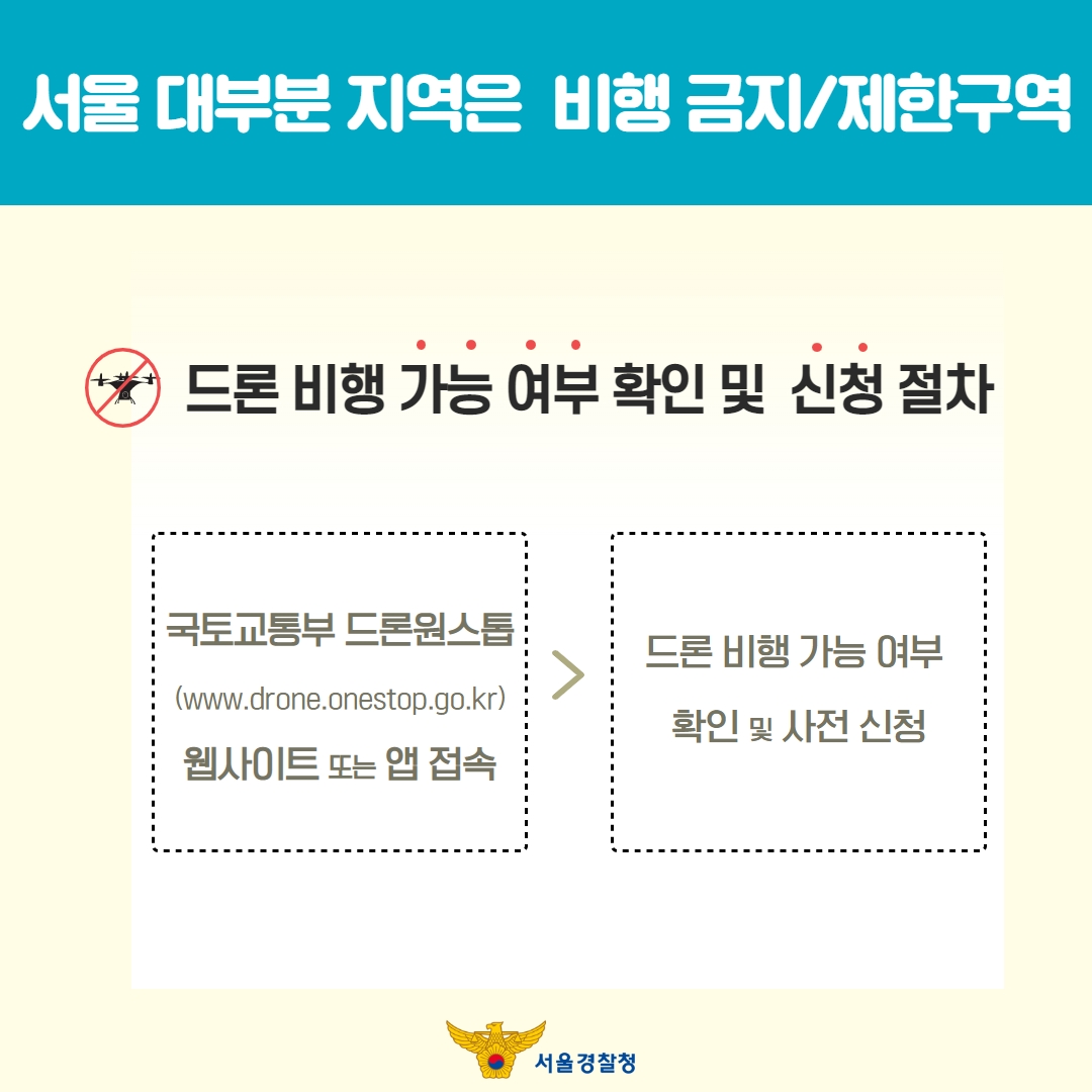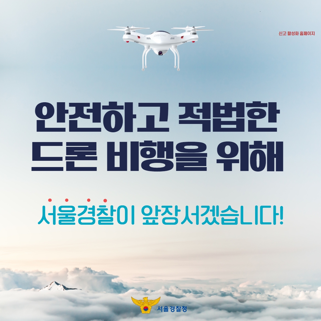 승인 받은 드론이 서울 하늘을 자유롭게 날아다닐 수 있도록 서울경찰이 '드론 비행 신고 의무' 홍보에 앞장서겠습니다!