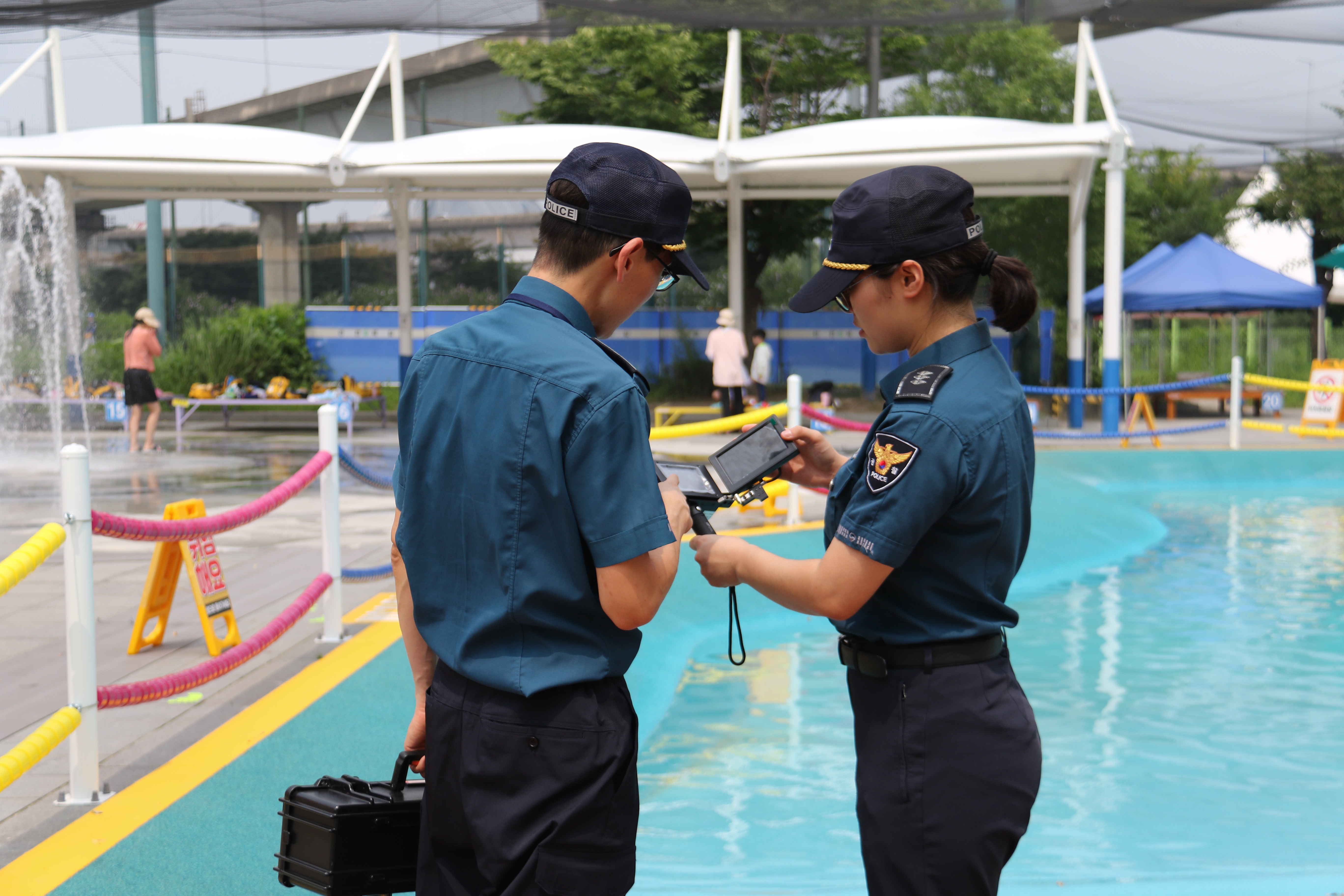 더운 여름, 시민들이 걱정 없이 물놀이에만 전념할 수 있도록, 경찰이 발로 뛰겠습니다.