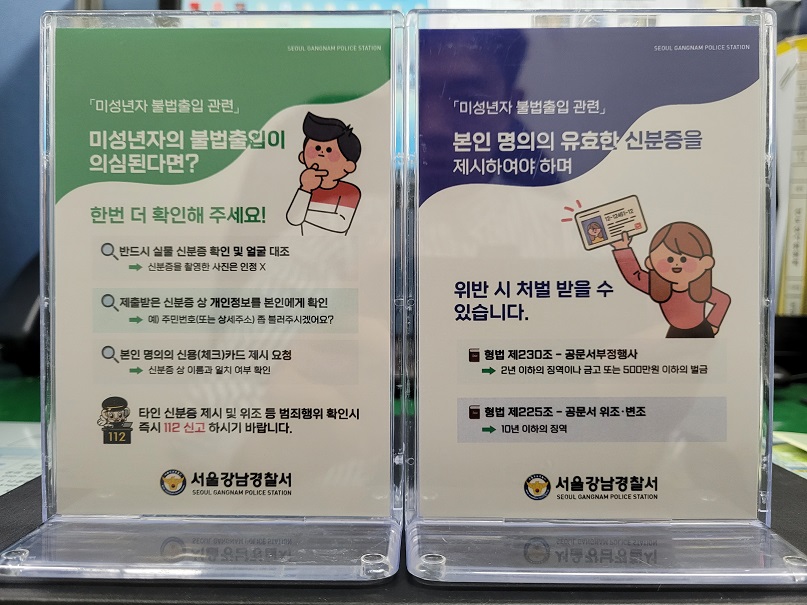 또한 청소년 불법출입 경고문과 직원대응 방법 등이 적힌