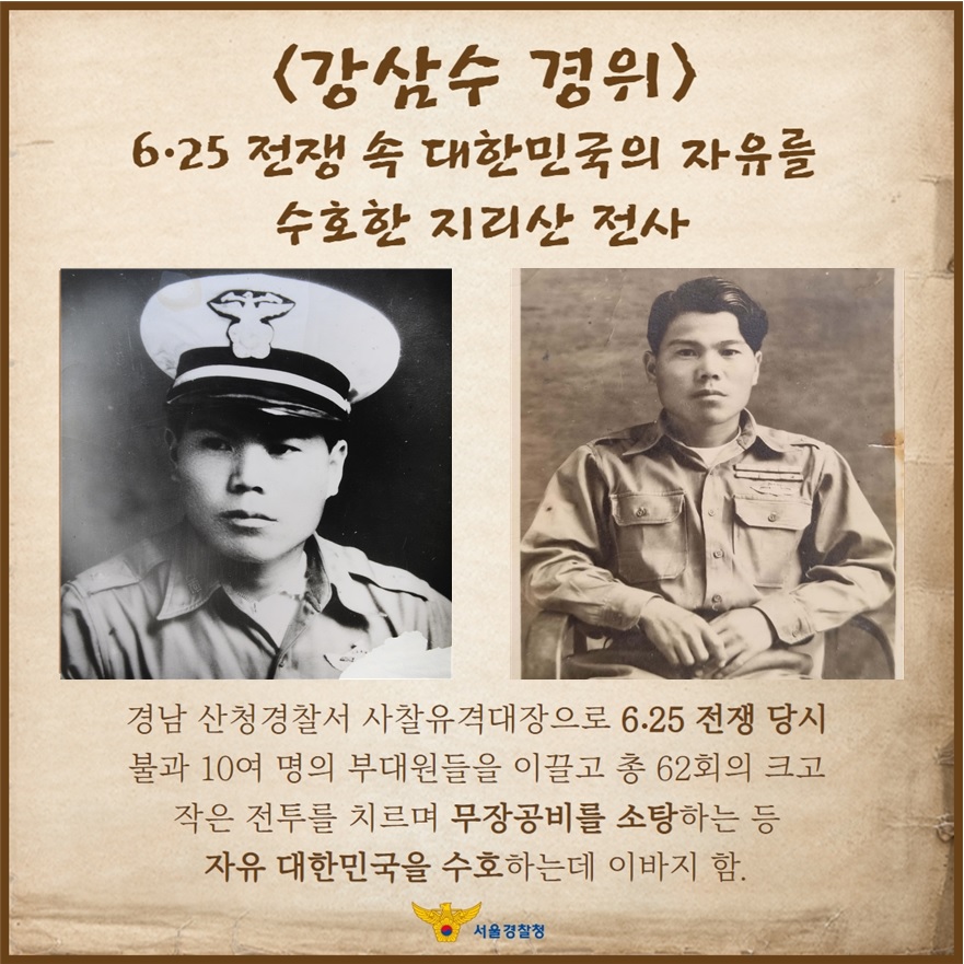 강삼수 경위는 6·25전쟁 당시 경남 산청경찰서 사찰유격대장으로 근무하며