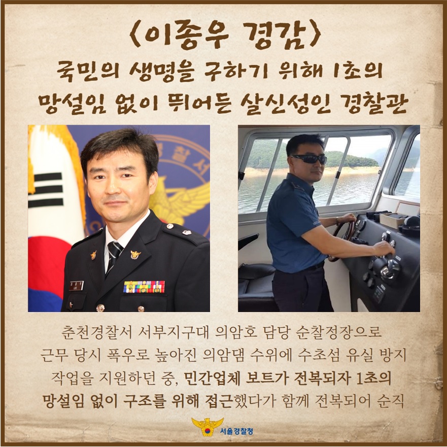 이종우 경감은 강원도 춘천경찰서 서부지구대 소속 의암호 담당 순찰정장으로 근무하던