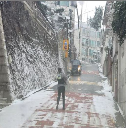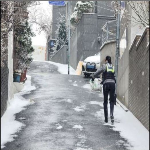 순찰 도중 주택가 골목에 눈이 쌓여 주민 이동에 어려움이 있는 곳을 발견하면