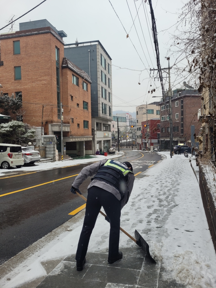 종로구청과 협업하여 즉시 제설 작업을 실시하였습니다.