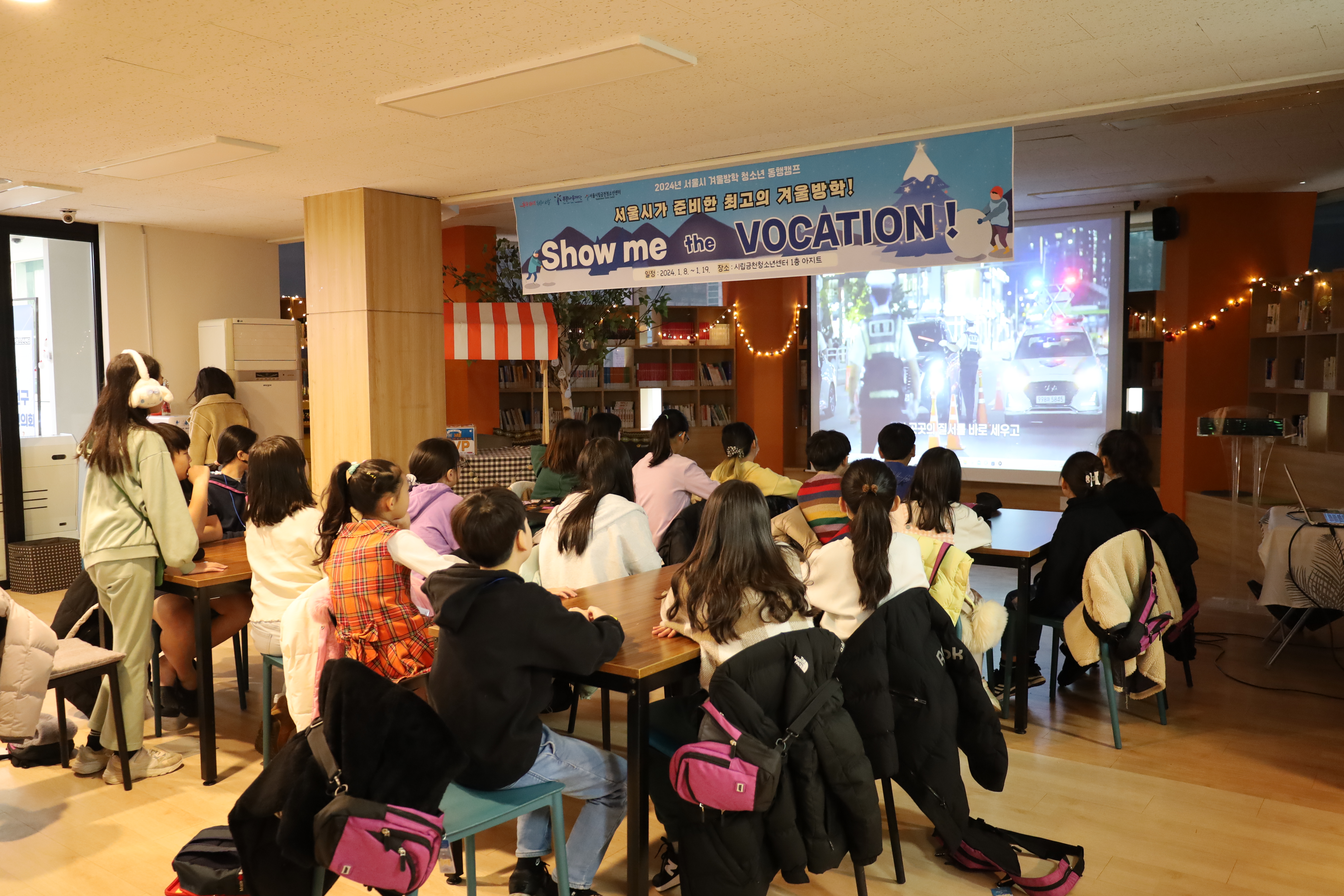 서울시 겨울방학 청소년 동행캠프에 참여한 청소년 친구들과 시립금천청소년센터에서