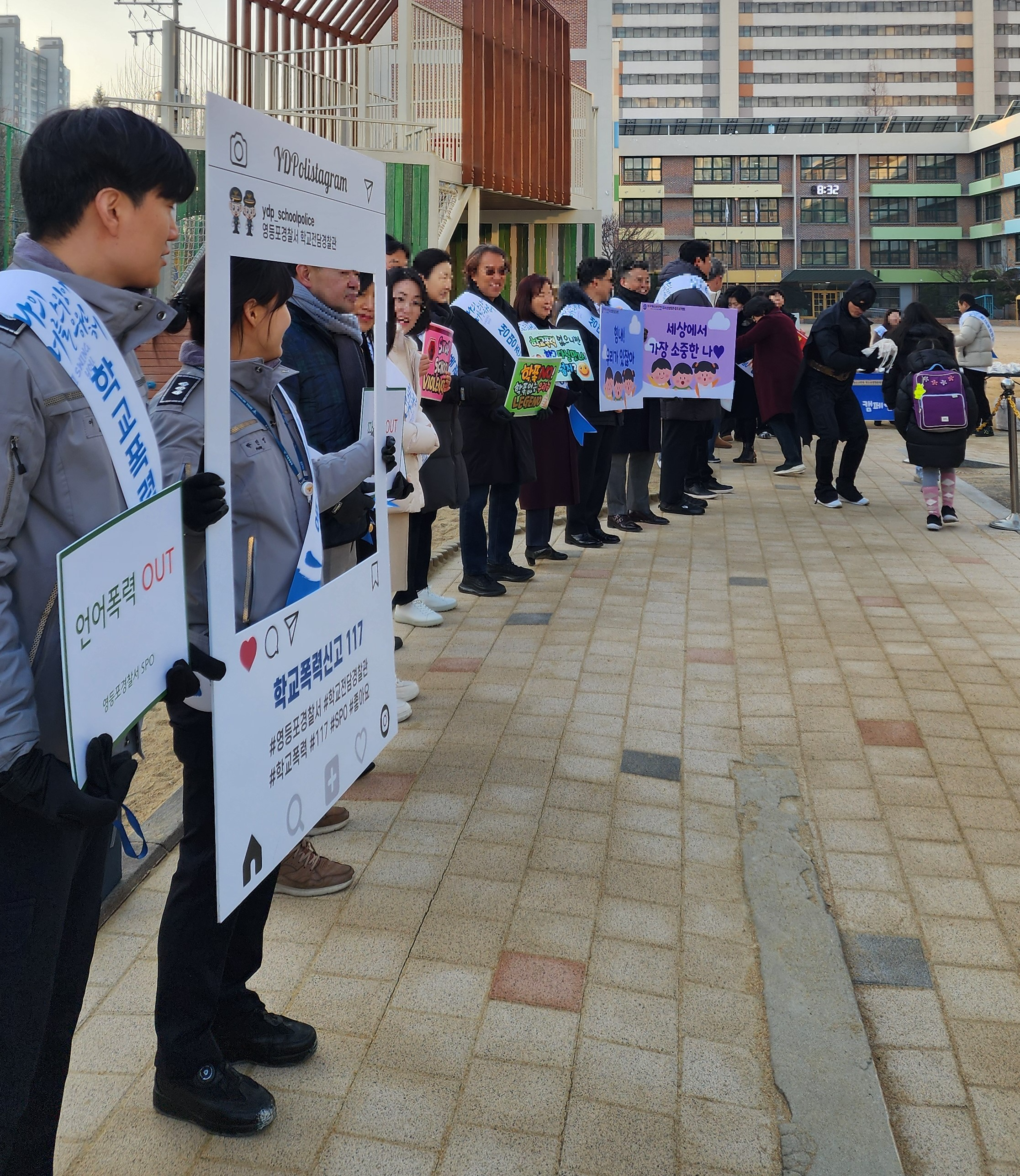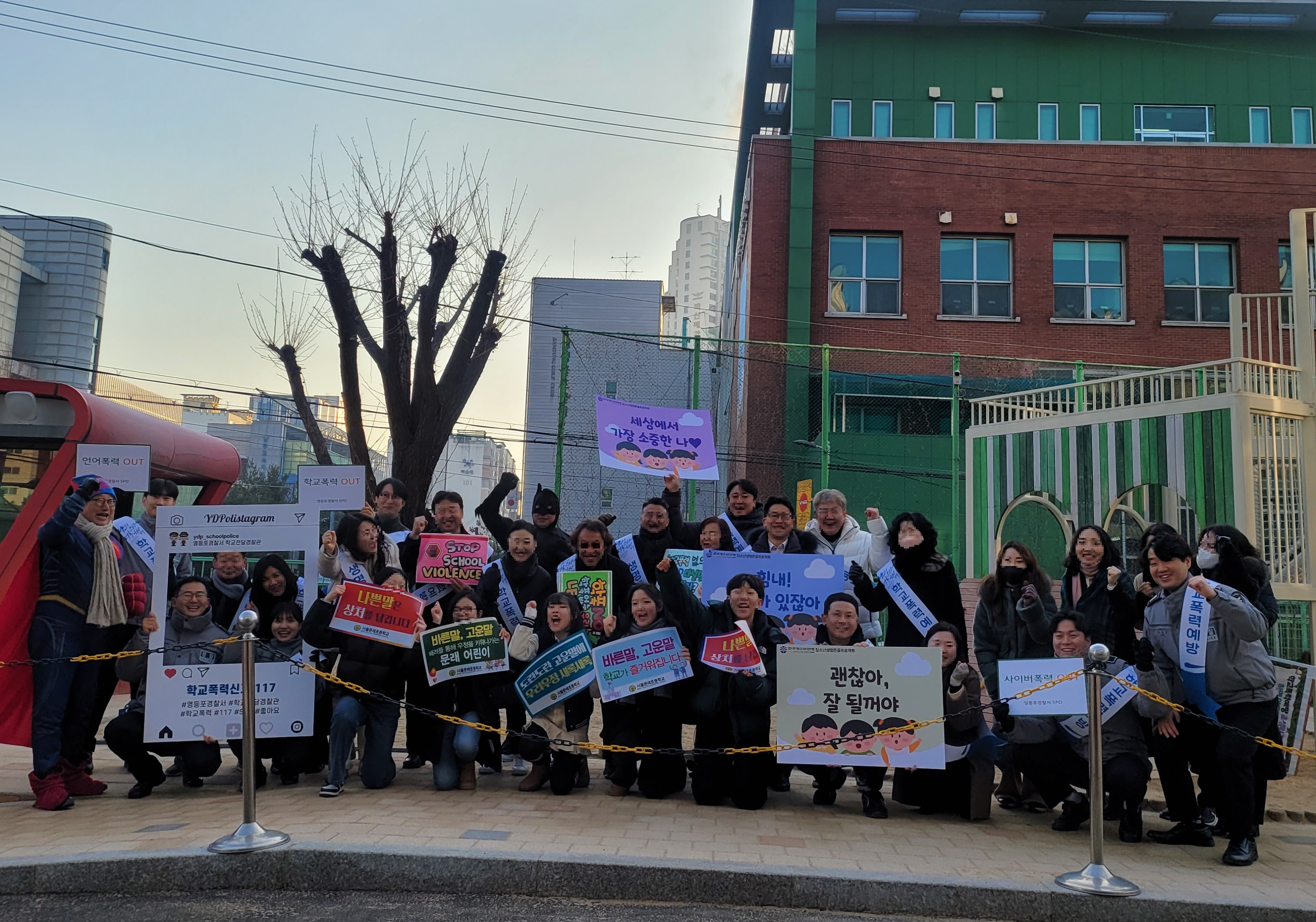 학교전담경찰관들과 함께 학교폭력 예방 캠페인을 진행하였습니다.
