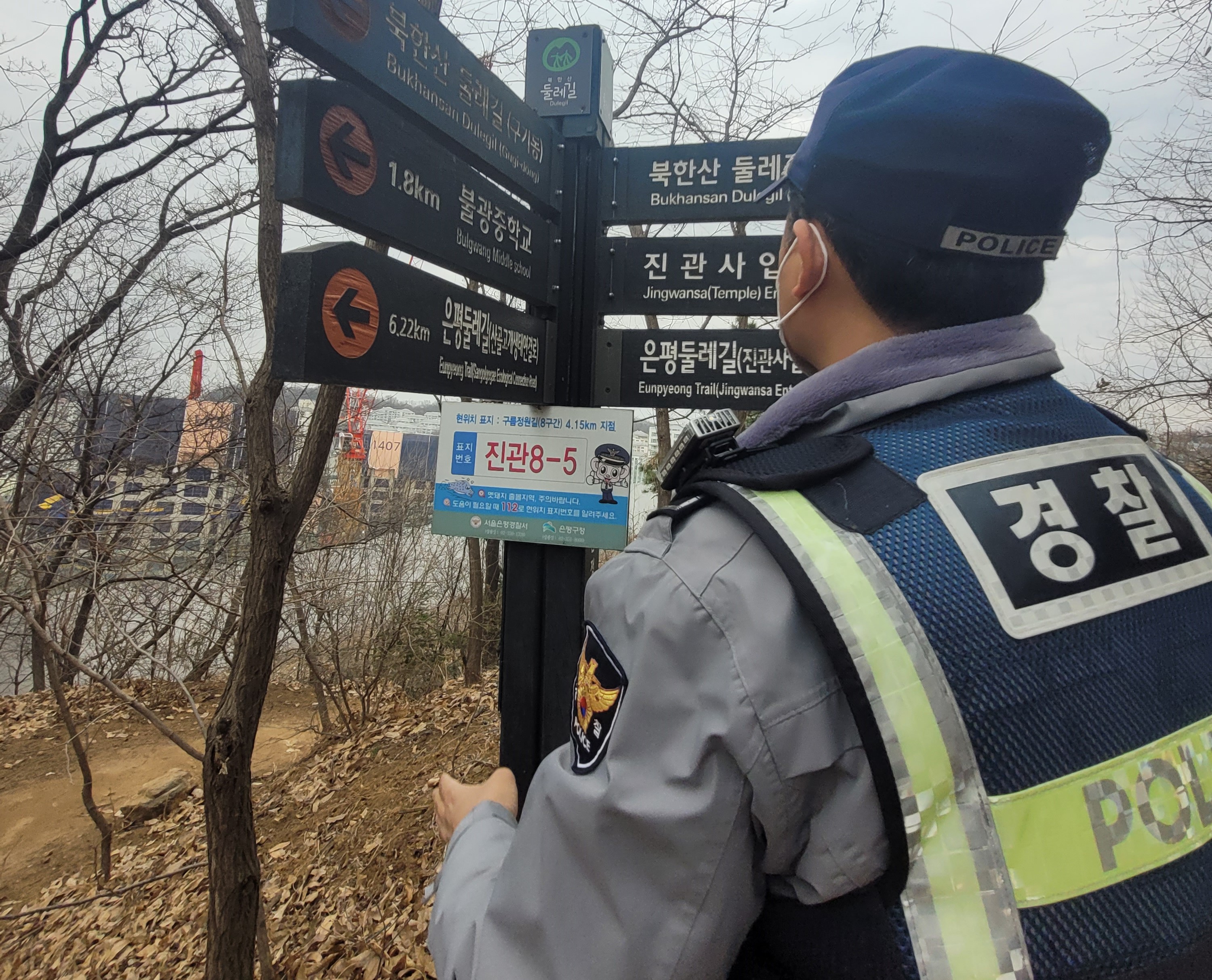 이런 환경에 대비하여 은평경찰서 경찰관들은 주민들이 많이 이용하는 관내 둘레길과 그 주변을 순찰하였습니다.