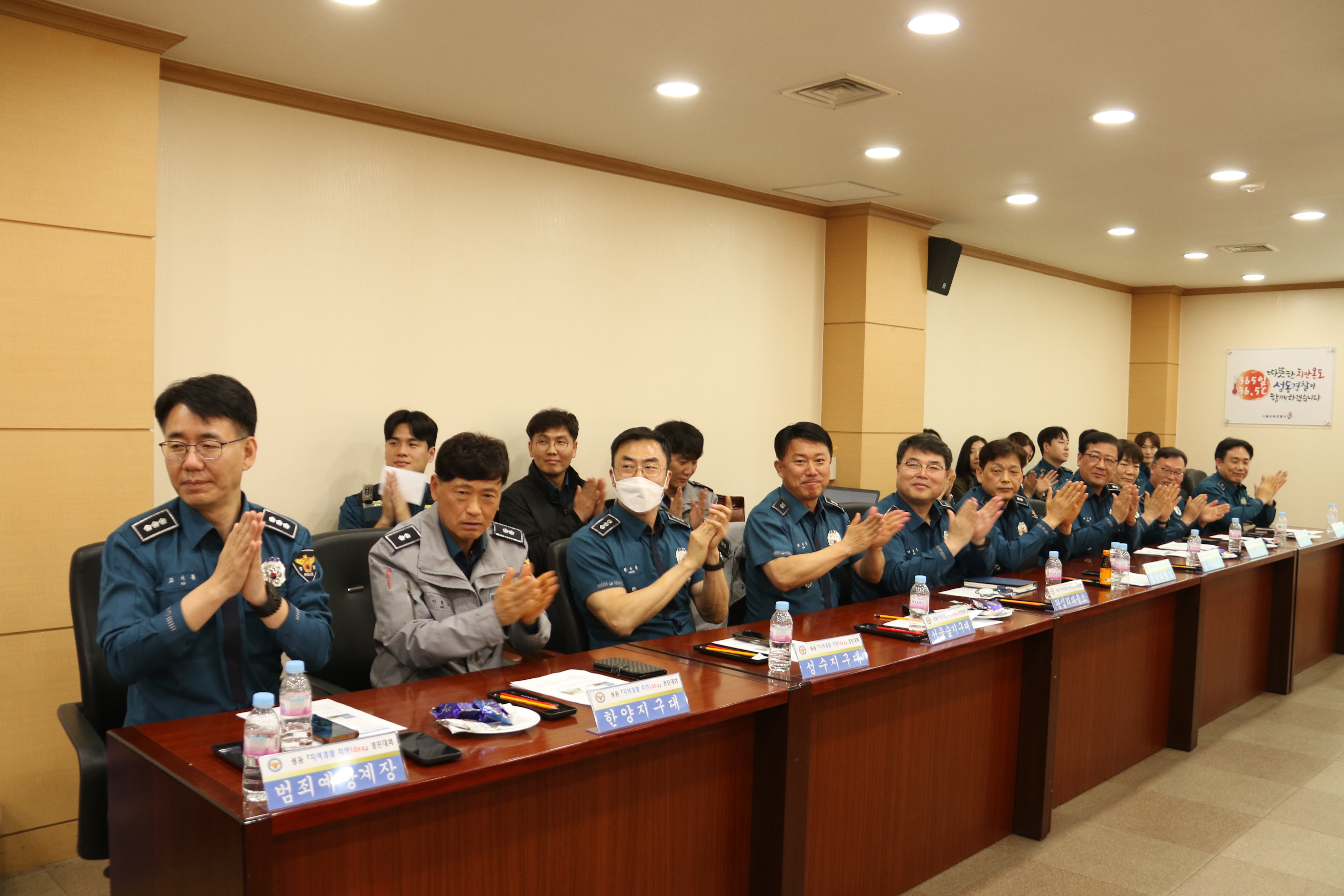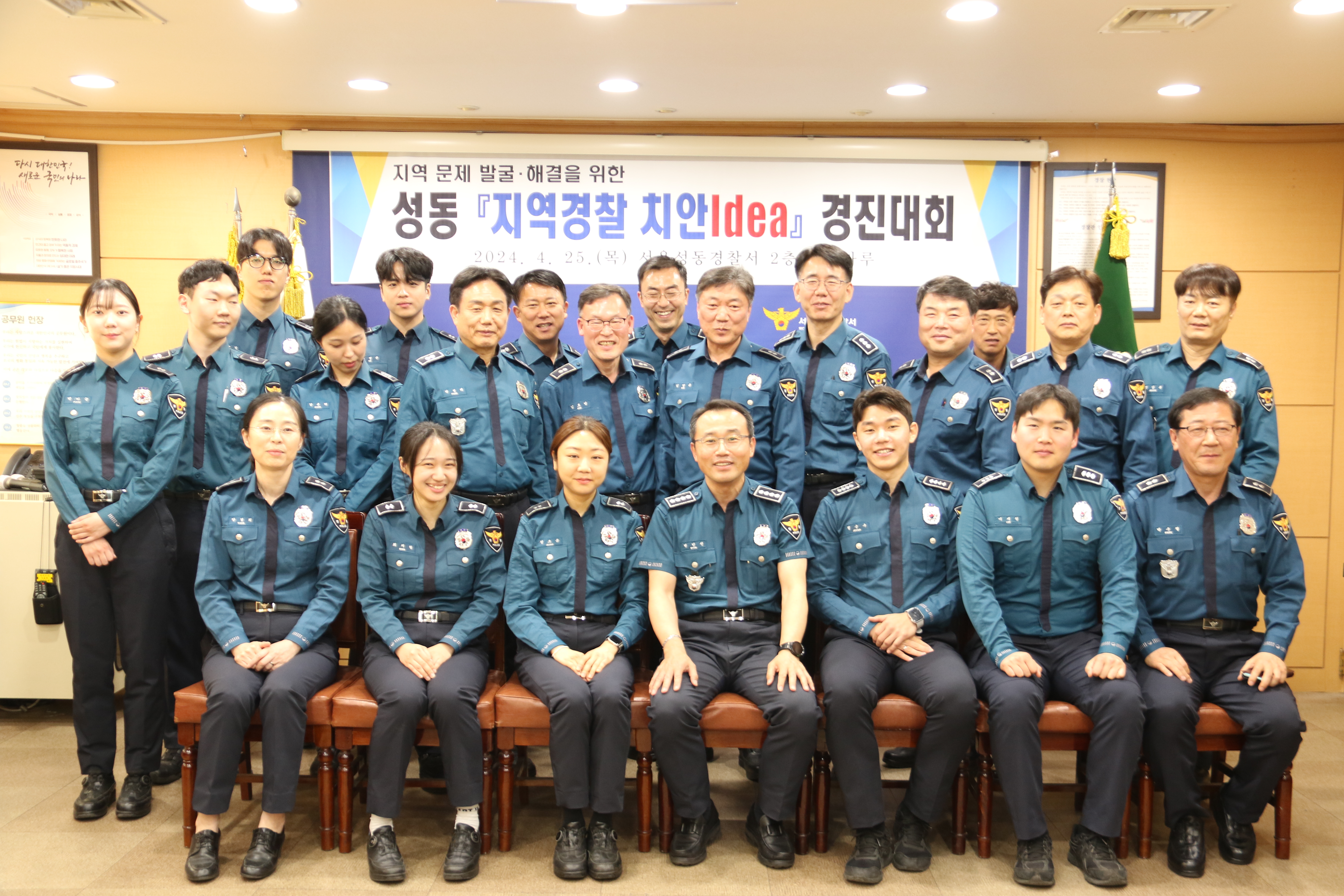 안녕하세요. 성동경찰서입니다. 4월 25일 성동경찰서에서는 그동안 쉽게 볼 수 없었던 이색적인 행사가 열렸는데요. 바로 지역사회의 안전을 지키고 치안을 확보하기 위한 치안 아이디어 경진대회입니다. 성동구의 지역특수성을 고려하여 치안불안 요소를 발굴하고, 이를 개선할 수 있는 방안을 지역경찰이 스스로 고민하는 문제해결 중심의 예방적 경찰활동의 일환에서 개최되었습니다. 성동구 관내에 있는 지역관서(지구대, 파출소) 대표자가 5~10분 분량의 아이디어를 발표하고, 문제발굴의 적정성, 노력도, 기대효과 등 부문을 검토하여 평가를 받았습니다. 1~3위를 한 경찰관에게는 푸짐한 상품과 표창, 포상휴가 등의 보상이 주어졌습니다. 성동경찰서장(총경 변민선)도 참석하여 표창을 수여하고 발표자를 비롯한 지역관서 근무자들을 격려했습니다. 이날 발표에서 다룬 아이디어는 지자체 등과 협업하여 현실화될 예정입니다. 앞으로도 평안하고 질서 있는 지역사회를 위한 성동경찰의 노력을 지켜봐 주시기 바랍니다. 감사합니다!