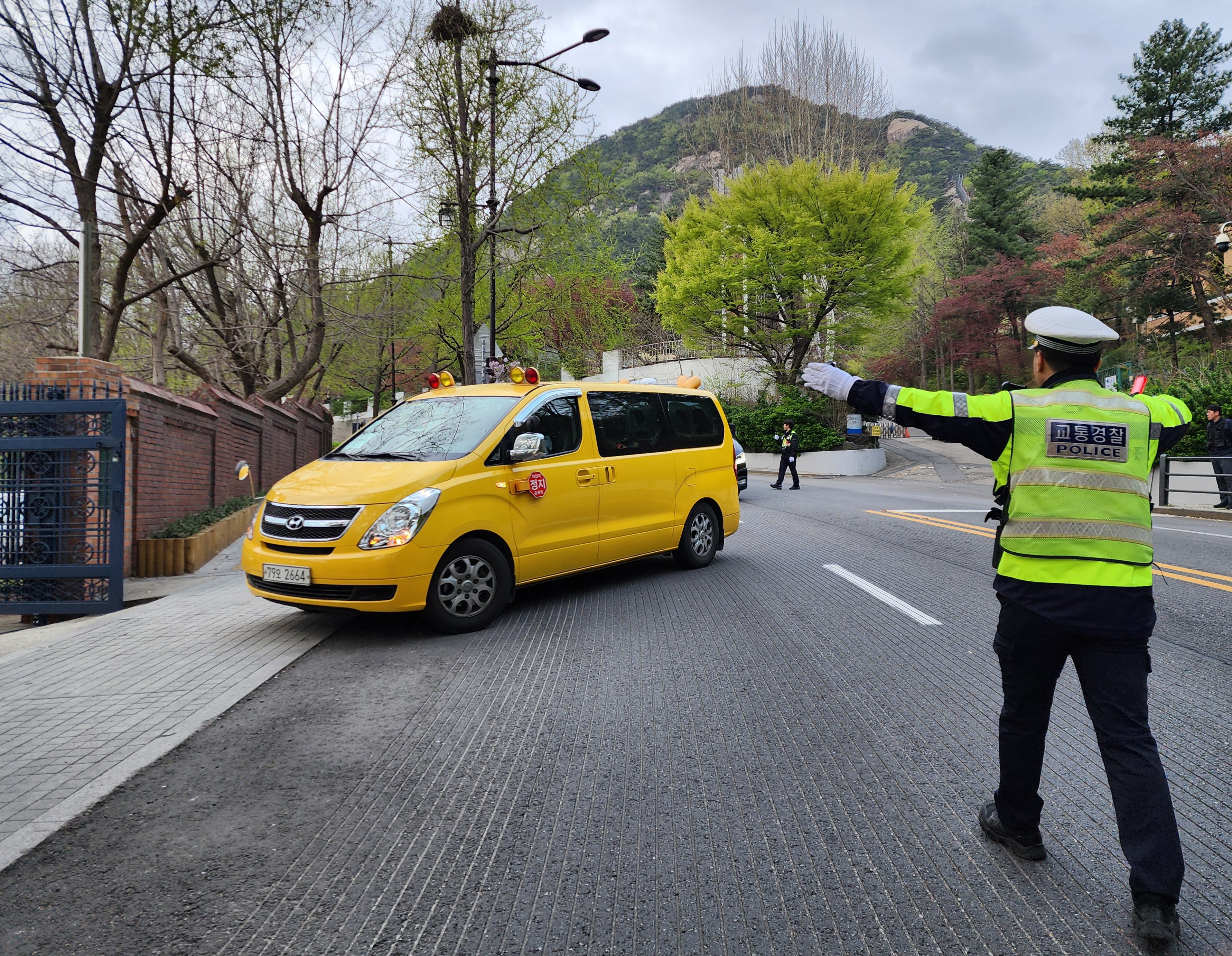 차량들이 혼선을 빚지 않도록 교통 통제를 하며,