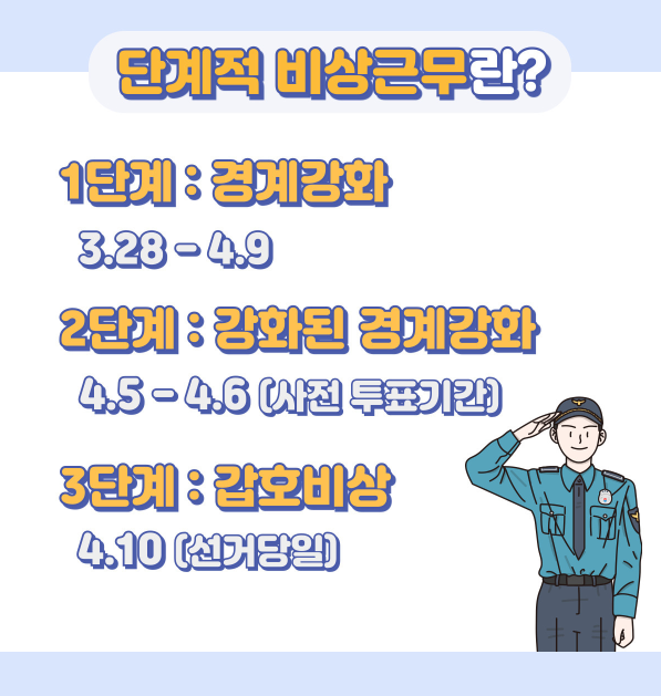 | (수서) 제 22대 국회의원 선거 투표함 안전한 회송 경비 활동 (1) | 2024.04.11 |