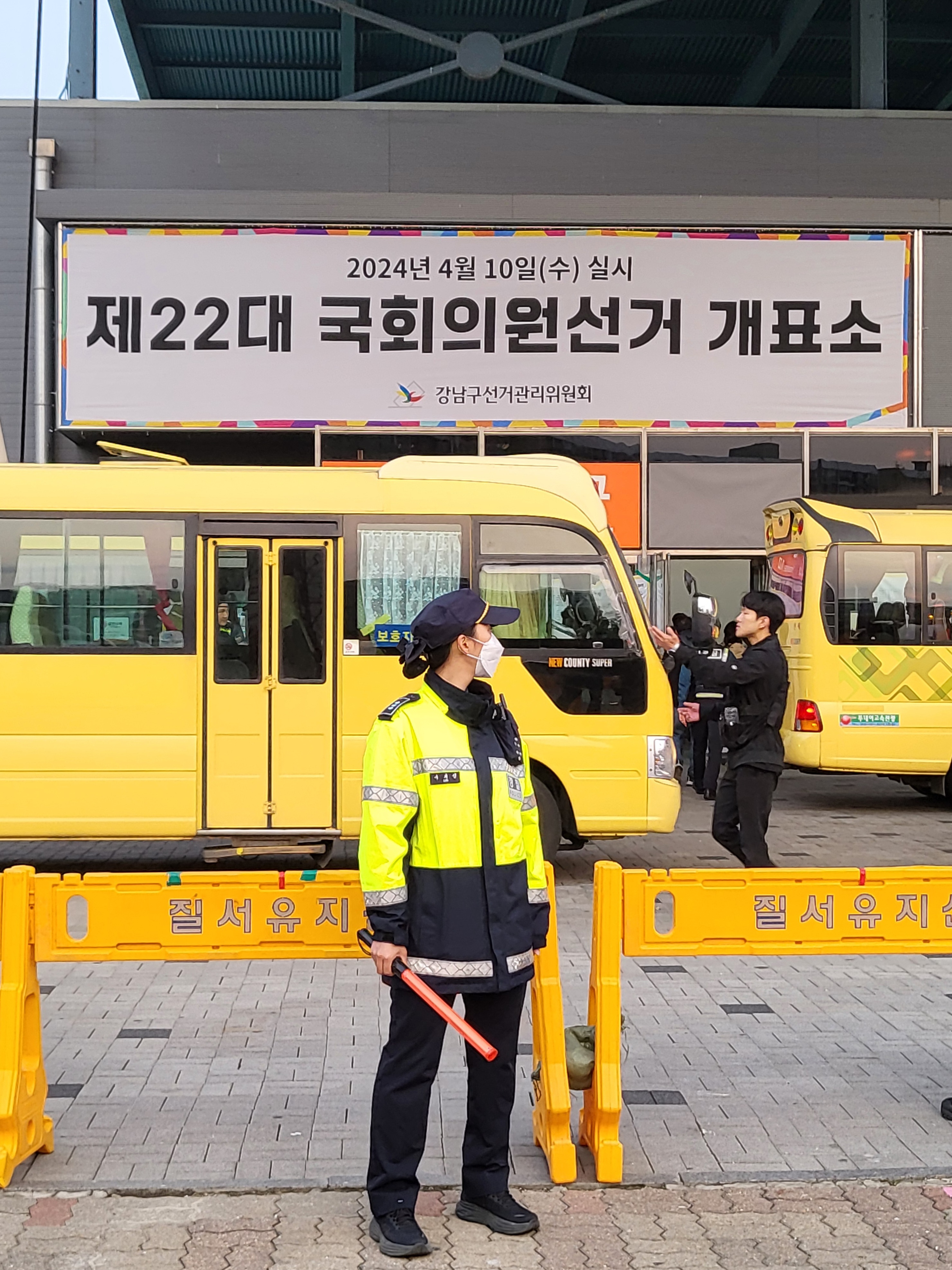 개표소 혼잡 방지와 안전을 위해 수서경찰서 교통과와 경비과 경찰관들의 많은 노력이 있었습니다.