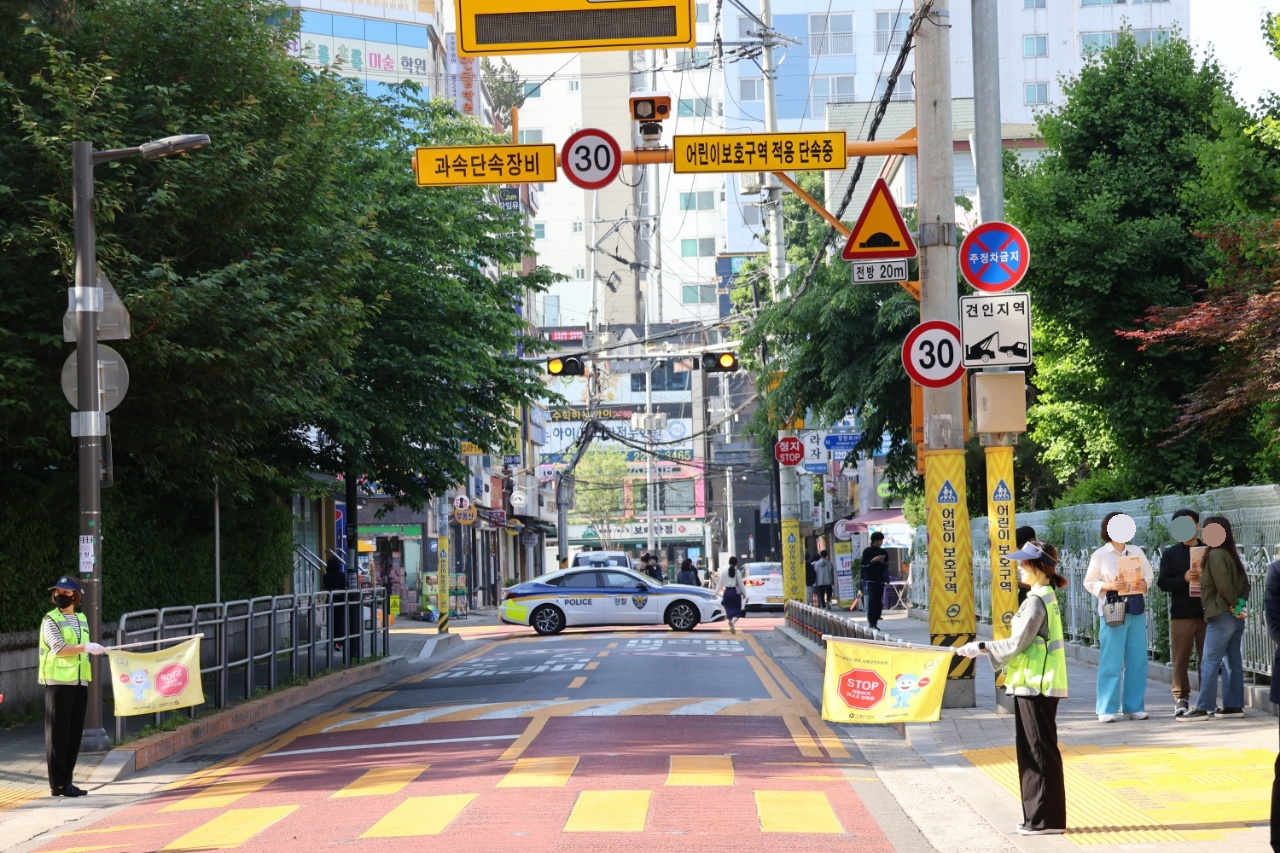 동대문경찰서 장안2파출소는 안전한 등굣길을 위해 초등학교 앞 차량을 통제하고,
