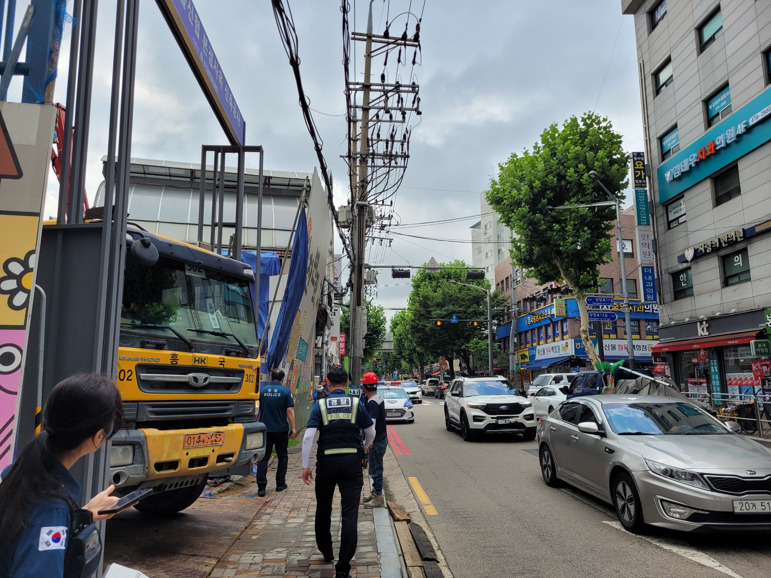 그래서 우리는 순찰차에 보관된 PL(폴리스 라인)과 라바콘을 이용하여 통행제한을 하고 우회조치를 하였습니다.