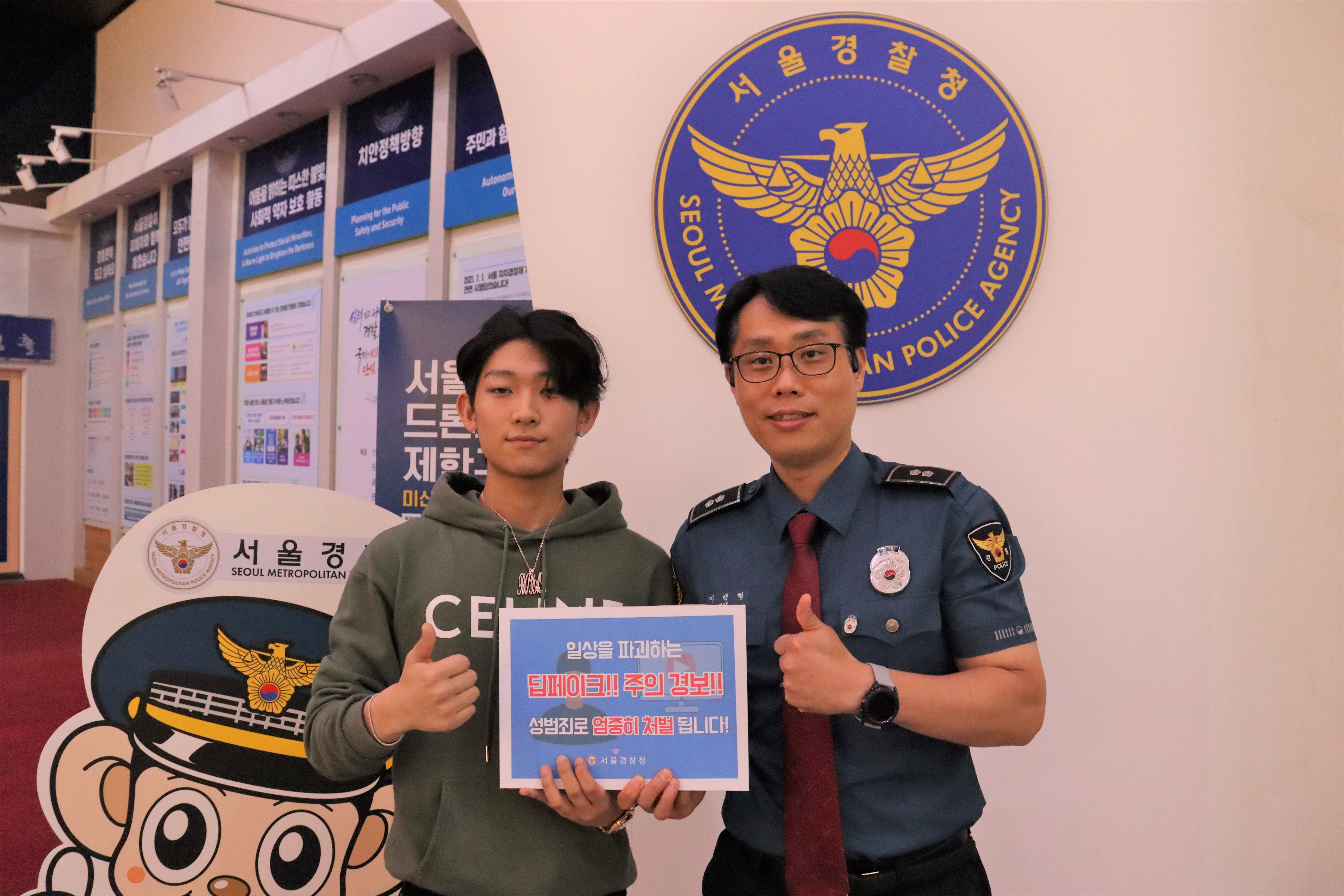 은사 같은 동작경찰서 여성청소년과 SPO 팀장(경감 이백형)님과 함께 홍보사진을 촬영하며